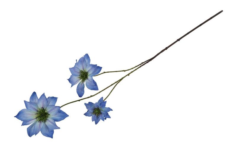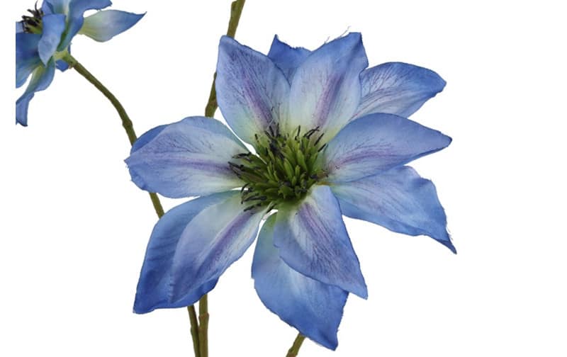 Deze Clematis in het blauw is stijlvol en natuurgetrouw vormgegeven. De zachte blauwtinten geven een frisse en elegante sfeer aan elk interieur.