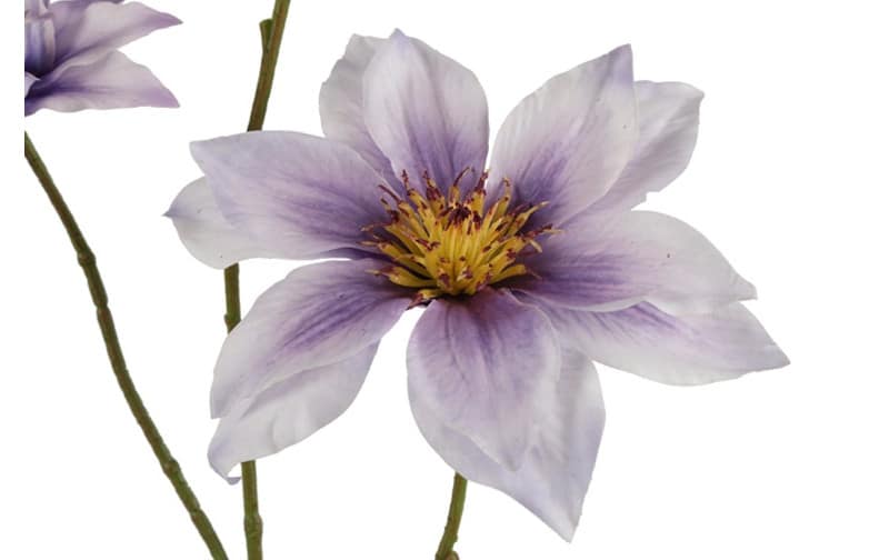 Deze Clematis in het licht paars is stijlvol en natuurgetrouw vormgegeven. De zachte paarstinten geven een frisse en elegante sfeer aan elk interieur.