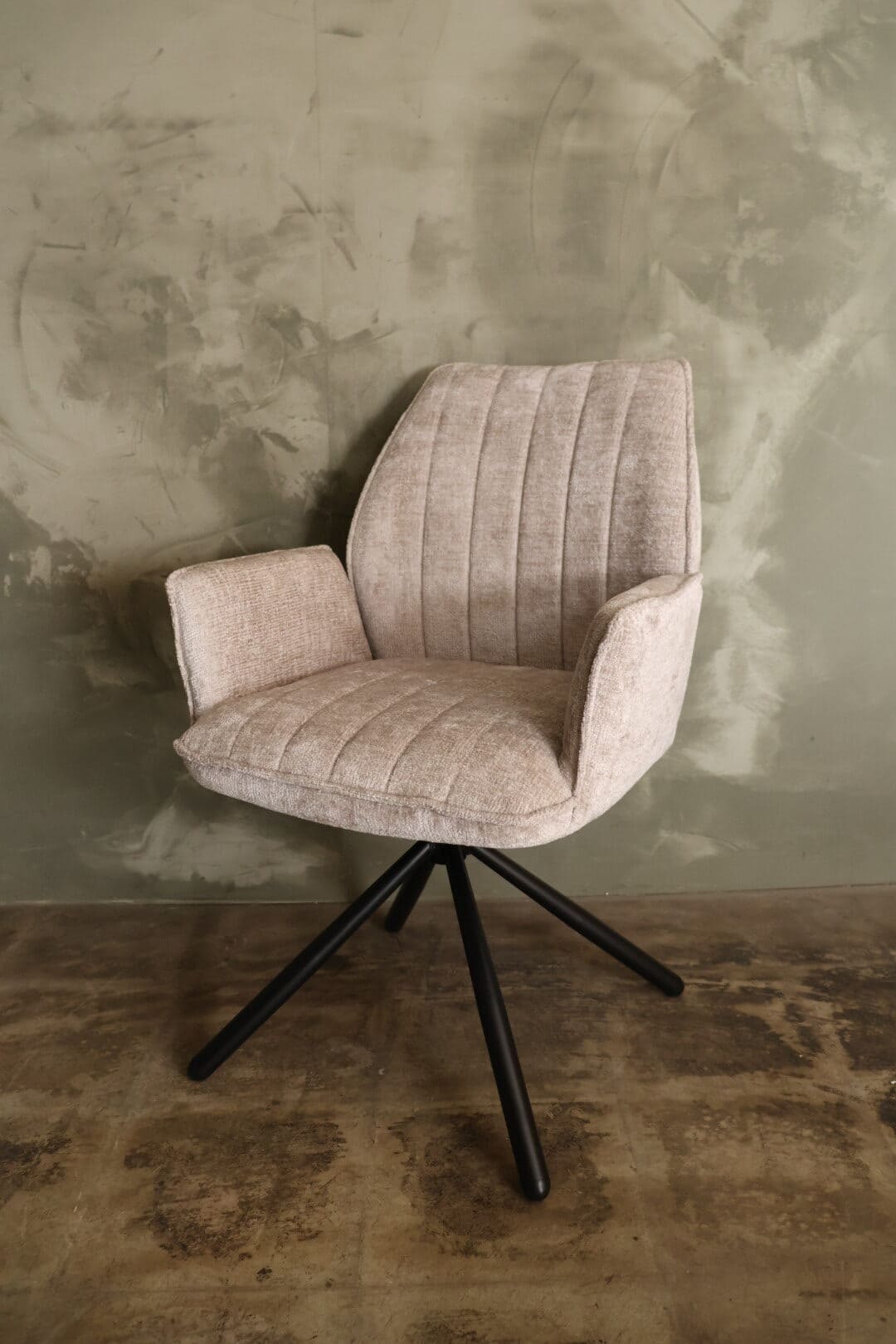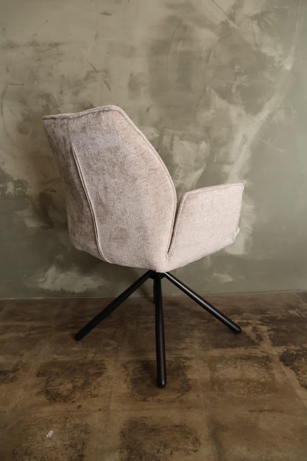 De draaibare eetkamerstoel Nina is de perfecte stoel aan je eetkamertafel! Trendy, comfortabel en luxueus, deze eetkamerstoel heeft het allemaal! Door de combinatie van delekkere zachte stof en het metalen onderstel krijgt de stoel een moderne luxe uitstraling waardoor deze perfect in verschillende interieurstijlen past. De armleuningen bieden een comfortabele zit.