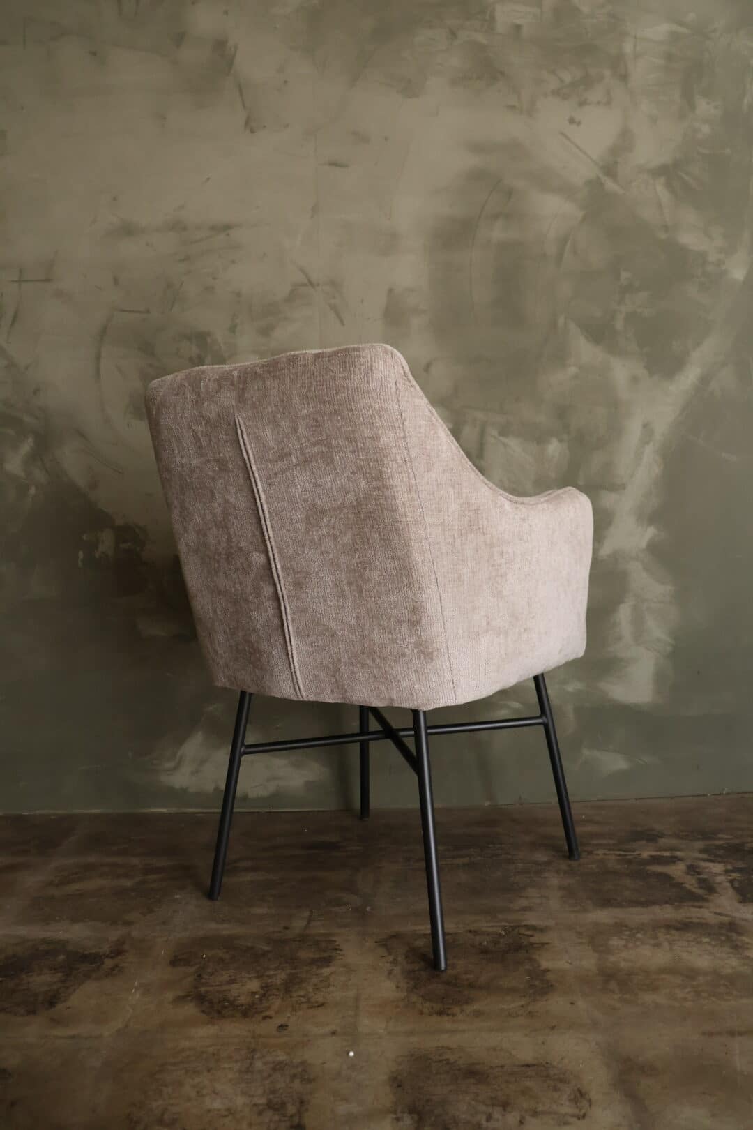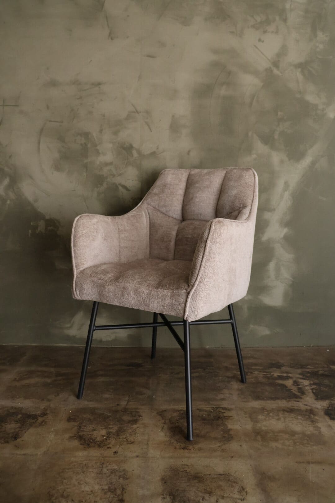 Eetkamerstoel Robin is comfortabel en mooi in ieder interieur. De stoel is bekleed met Bouclé stof, een aaibare stof die we in meerdere kleuren op voorraad hebben.