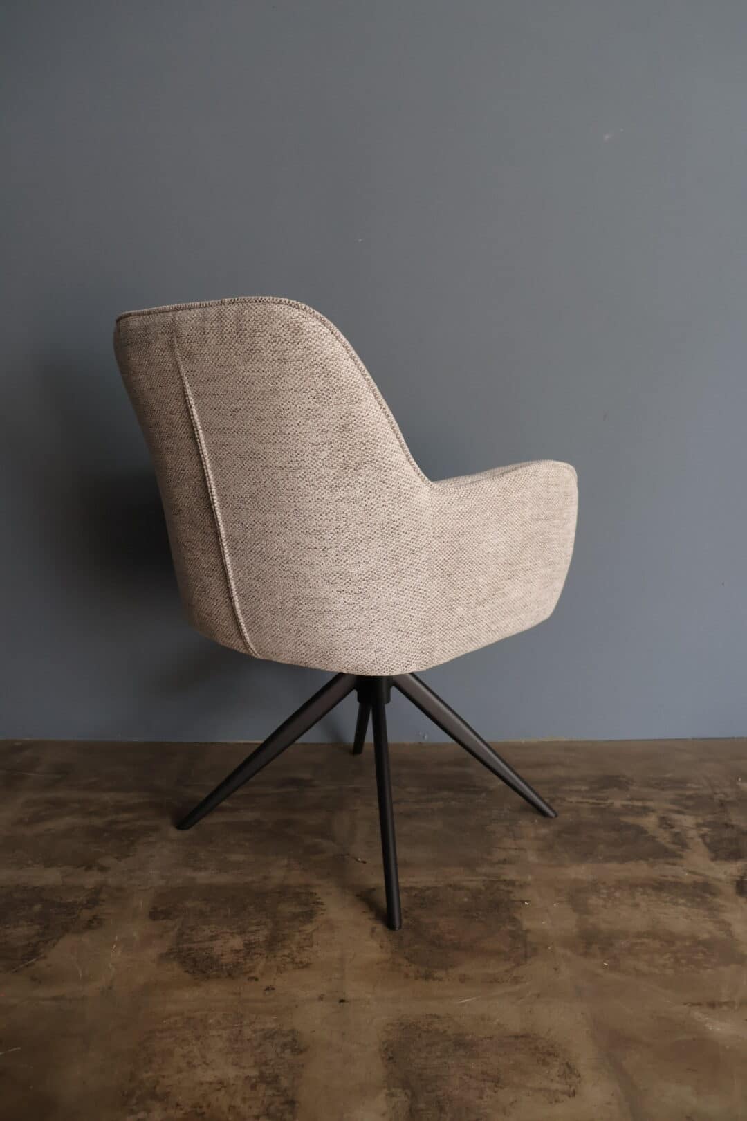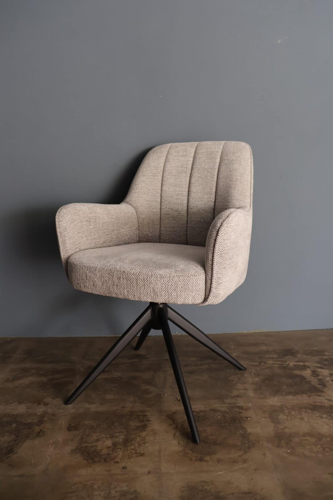 De armleuningen bieden extra steun tijdens lange diners of gezellig avonden aan tafel, terwijl de mooie, zachte stof de stoel een warme en stijlvolle uitstraling geeft. Het lichte ontwerp maakt hem boeven dien gemakkelijk te verplaatsen – praktisch en elegant tegelijk.
