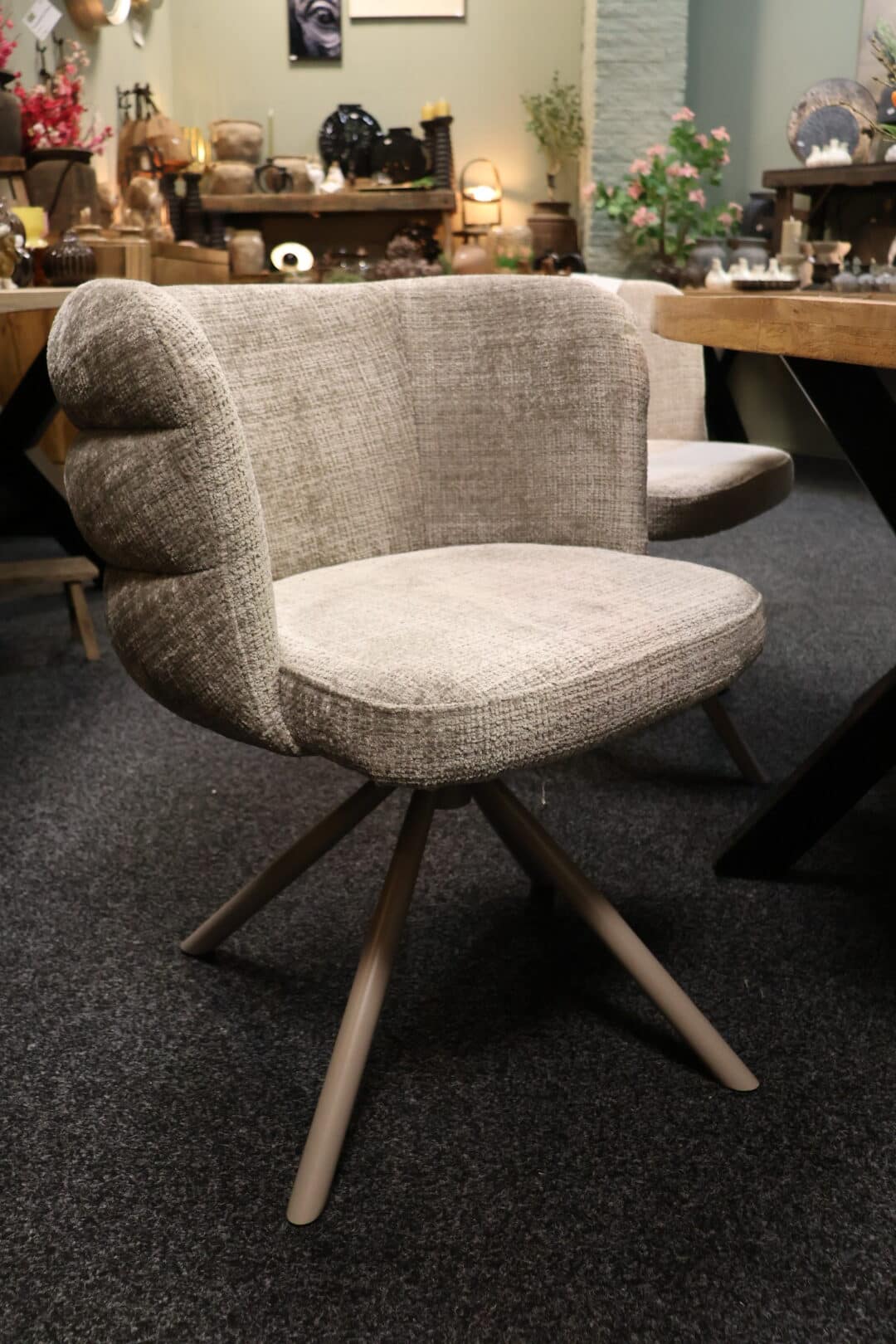De stoel is bekleed met een mooie, warme stof en is beschikbaar in meerdere kleuren, zodat je altijd een variant vindt die past bij jou.