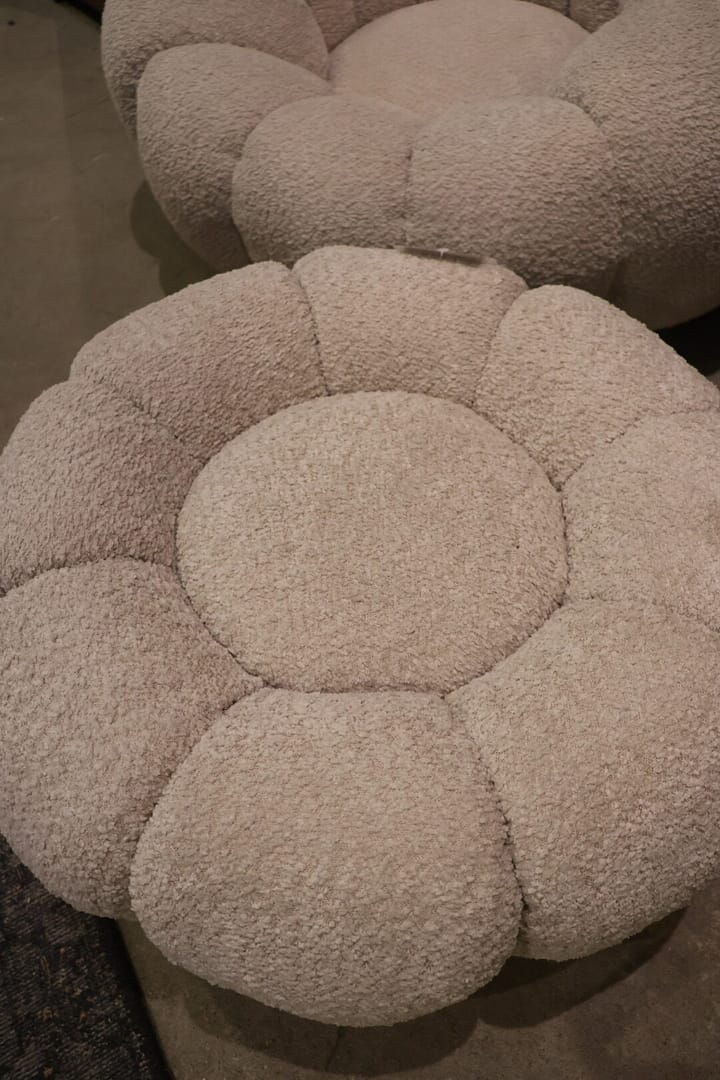 Deze prachtige ronde hocker brengt een vleugje speelsheid en zachtheid in je interieur. De witte teddystof voelt heerlijk zacht aan en nodigt uit tot ontspannen, terwijl het subtiele gebloemde patroon zorgt voor een frisse, vrolijke look.