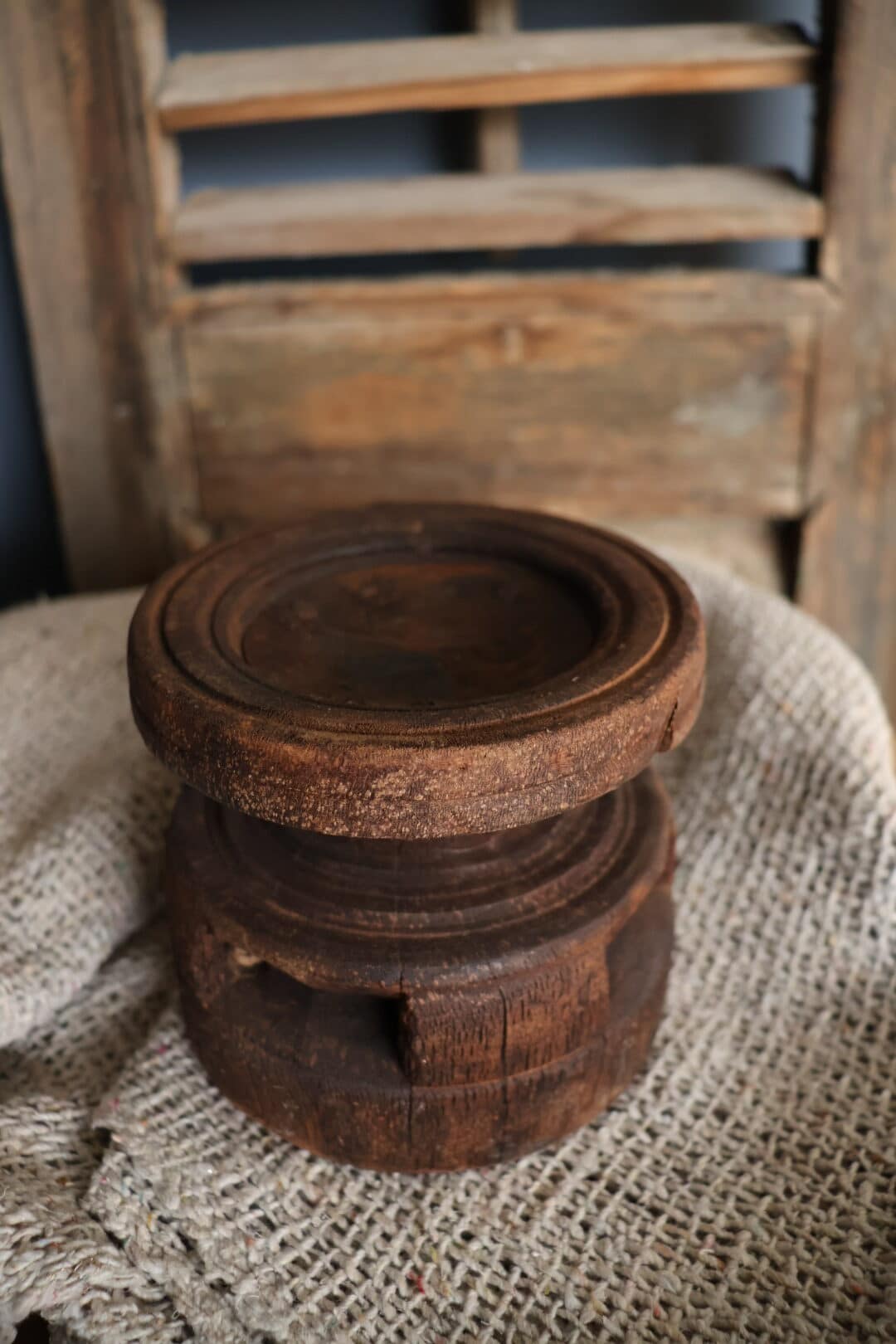 Ronde kandelaar van hout met fraai en gedetailleerd snijwerk. Het subtiele patroon geeft een sfeervol effect wanneer er een kaars in wordt geplaats. Een decoratief en warm accent voor op tafel, plank of vensterbank.