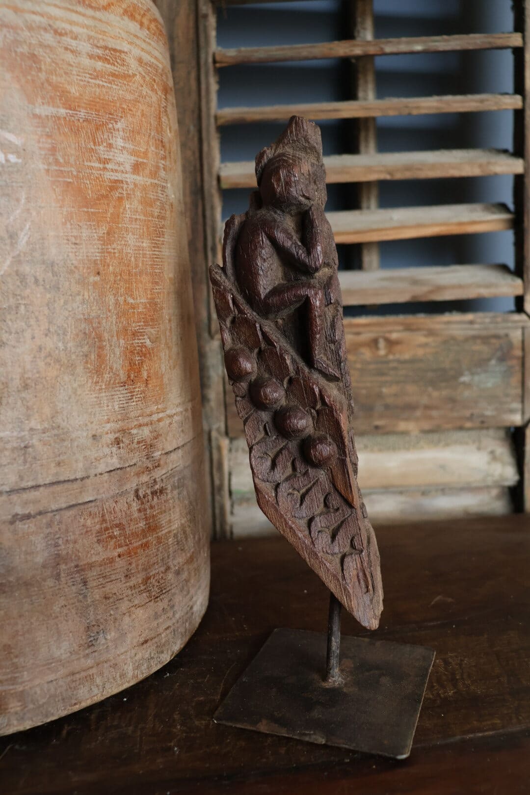Deze houtsculptuur “de denker” is met een hand gemaakt in India en straalt vakmanschap uit. Het natuurlijke hout geeft de sculptuur een warme uitstraling en maakt elk exemplaar uniek.