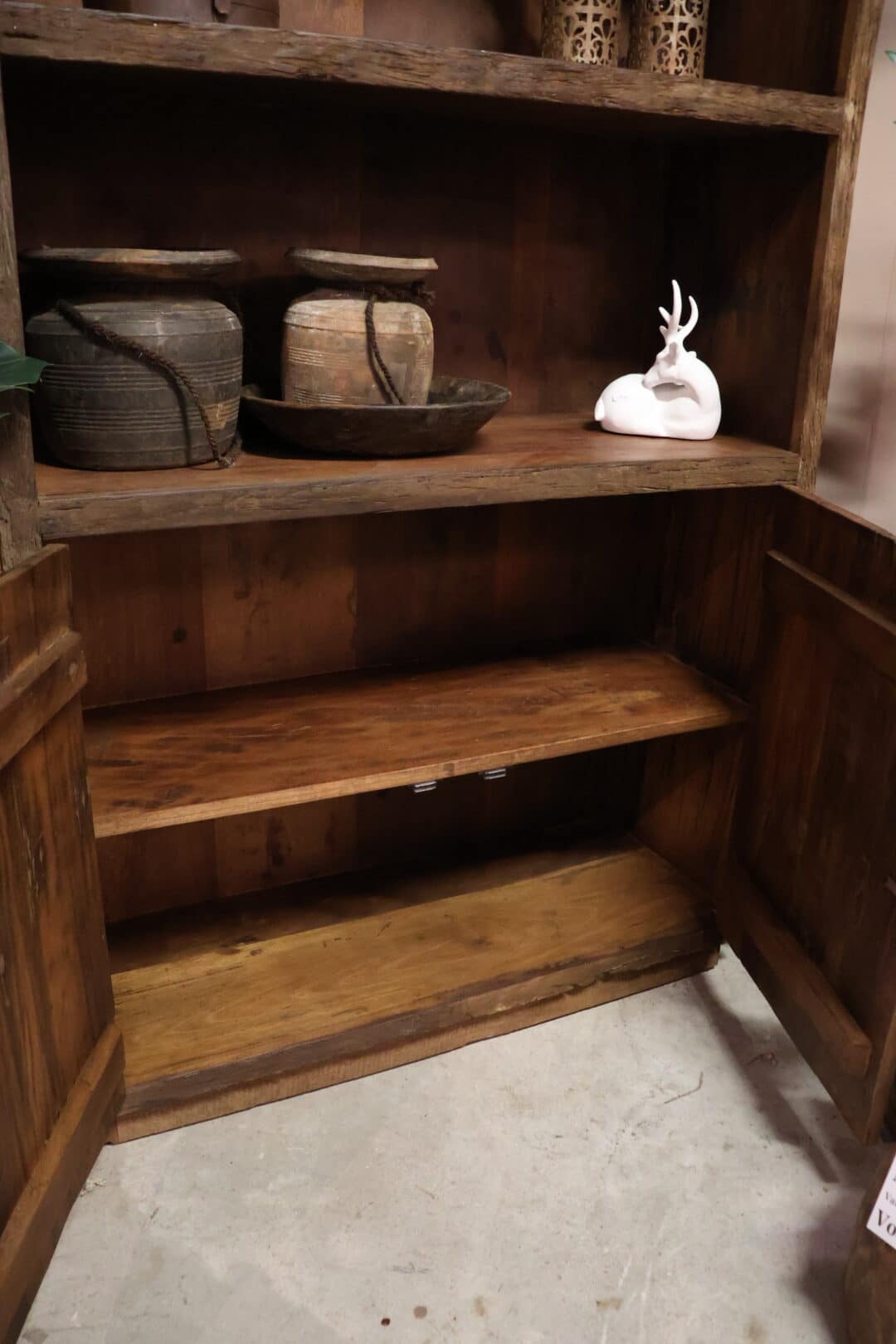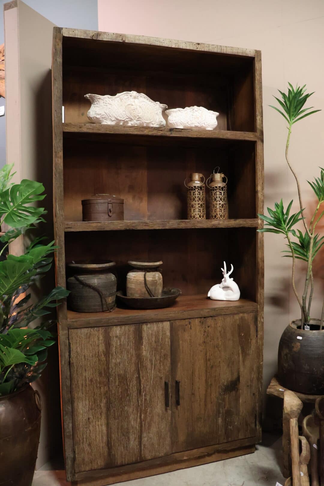 Deze sleeper wood opbergkast is robuust en stoer, perfect om je mooiste spullen tentoon te stellen. Het doorleefde hout geeft het meubel een warme, authentieke uitstraling, terwijl het stevige ontwerp zorgt voor duurzaamheid en karakter.