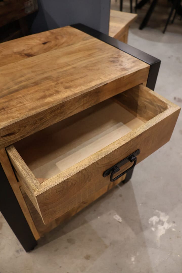 Dit kleine kastje van mangohout is compact van formaat, maar biedt verrassend veel opbergruimte. Dankzij het natuurlijke hout heeft het meubel een warme en stijlvolle uitstraling die moeiteloos in elk interieur past.