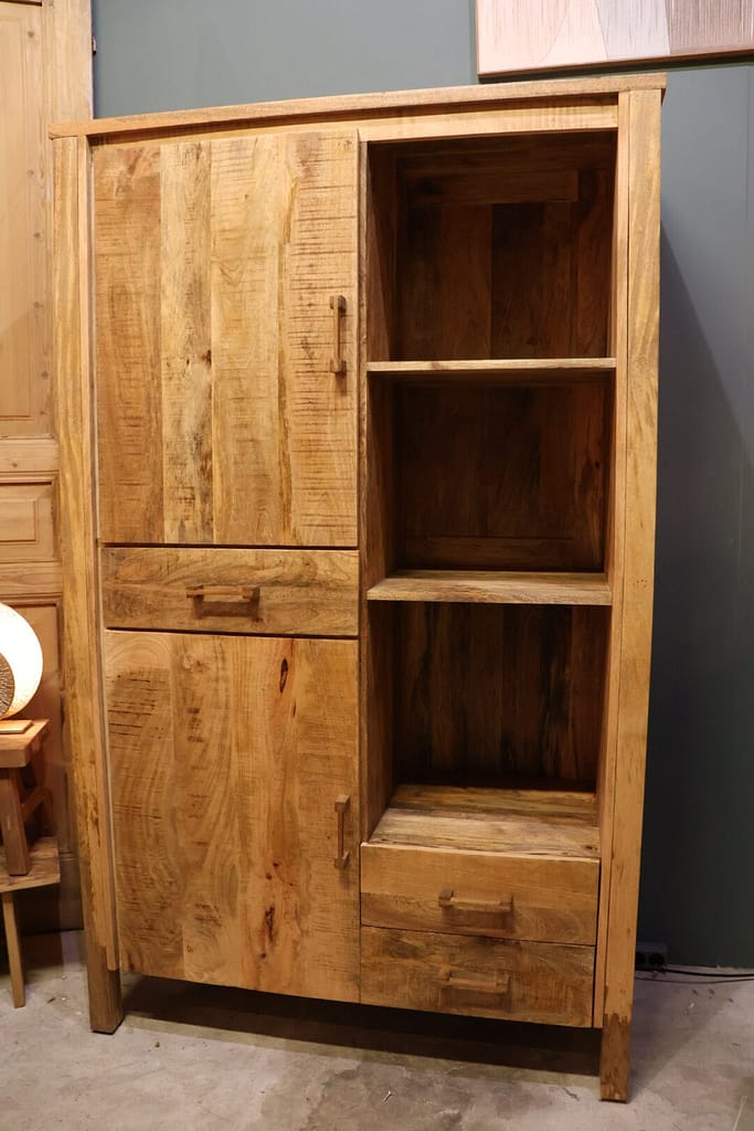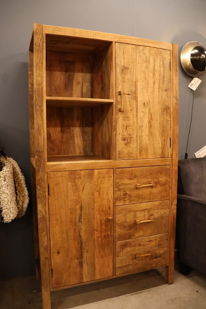Deze ladenkast van mangohout combineert praktische opbergruimte met een stoere uitstraling. Het warme hout zorgt voor een natuurlijke en sfeervolle touch in je interieur, terwijl de stevige constructie duurzaamheid en karakter toevoegt.