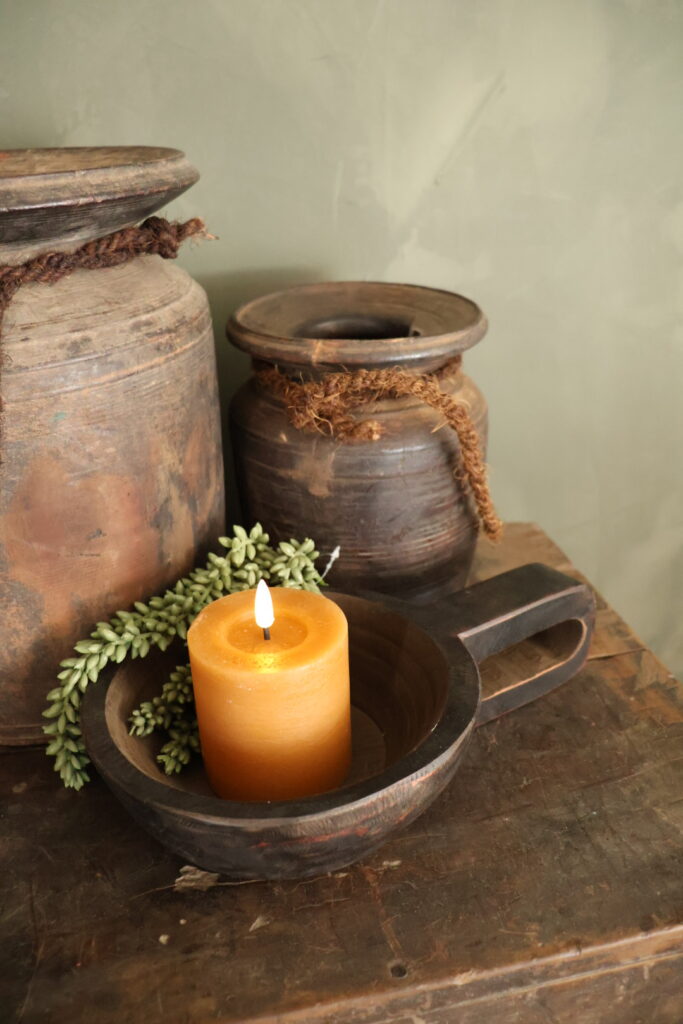 De mooie veroudering door gebruik is mooi zichtbaar in het hout, dit geeft karakter aan de kruik.