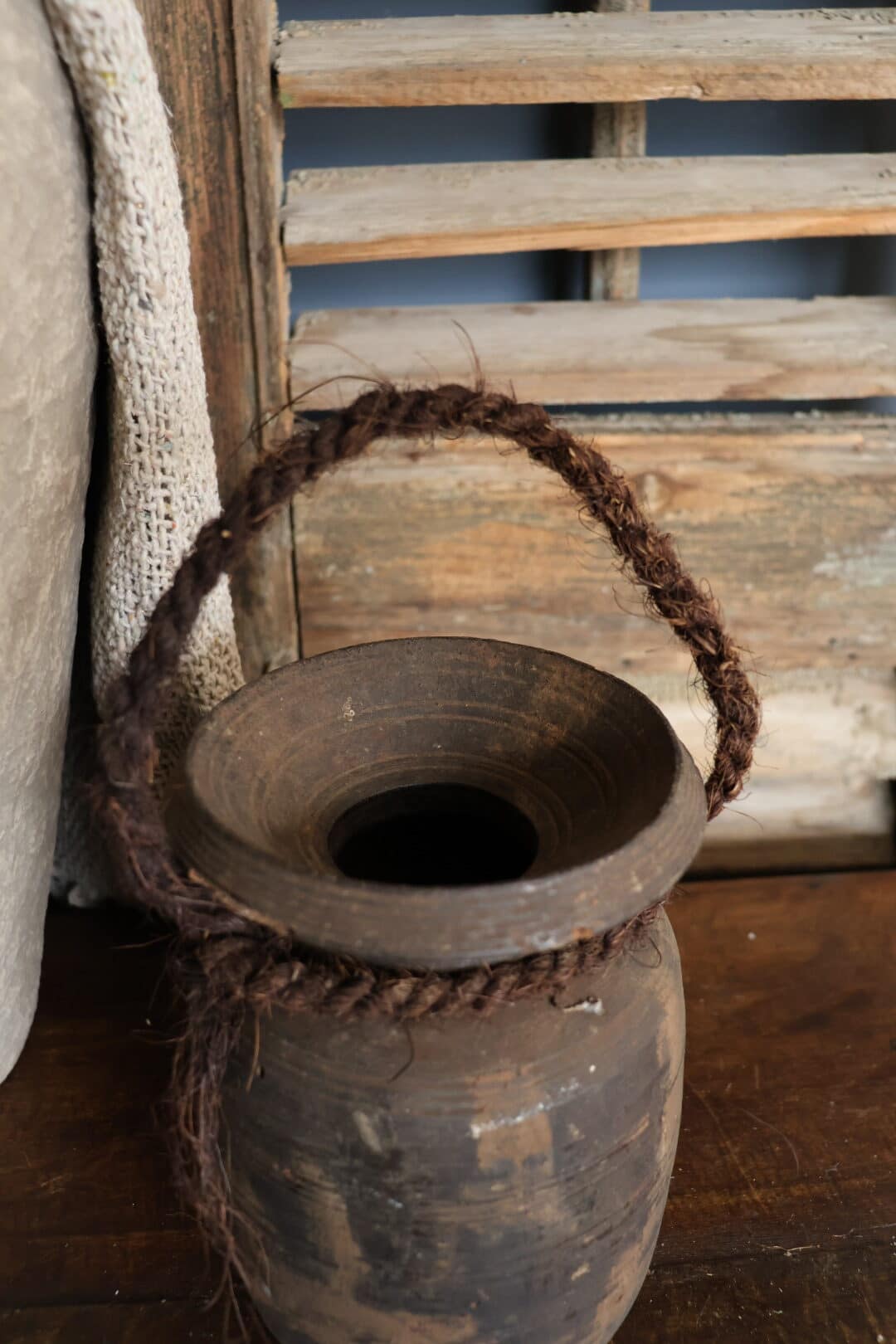 Deze handgemaakte Nepalese vaas heeft een stoere en landelijke uitstraling. Door het ambachtelijk maakproces is elk vaas uniek en kunnen kleine verschillen in kleur en structuur voorkomen. de robuuste vorm maakt de vaas ideaal voor het stijlen met onze zijde bloemen. Een karaktervol item dat warmte en sfeer toevoegt aan je interieur.