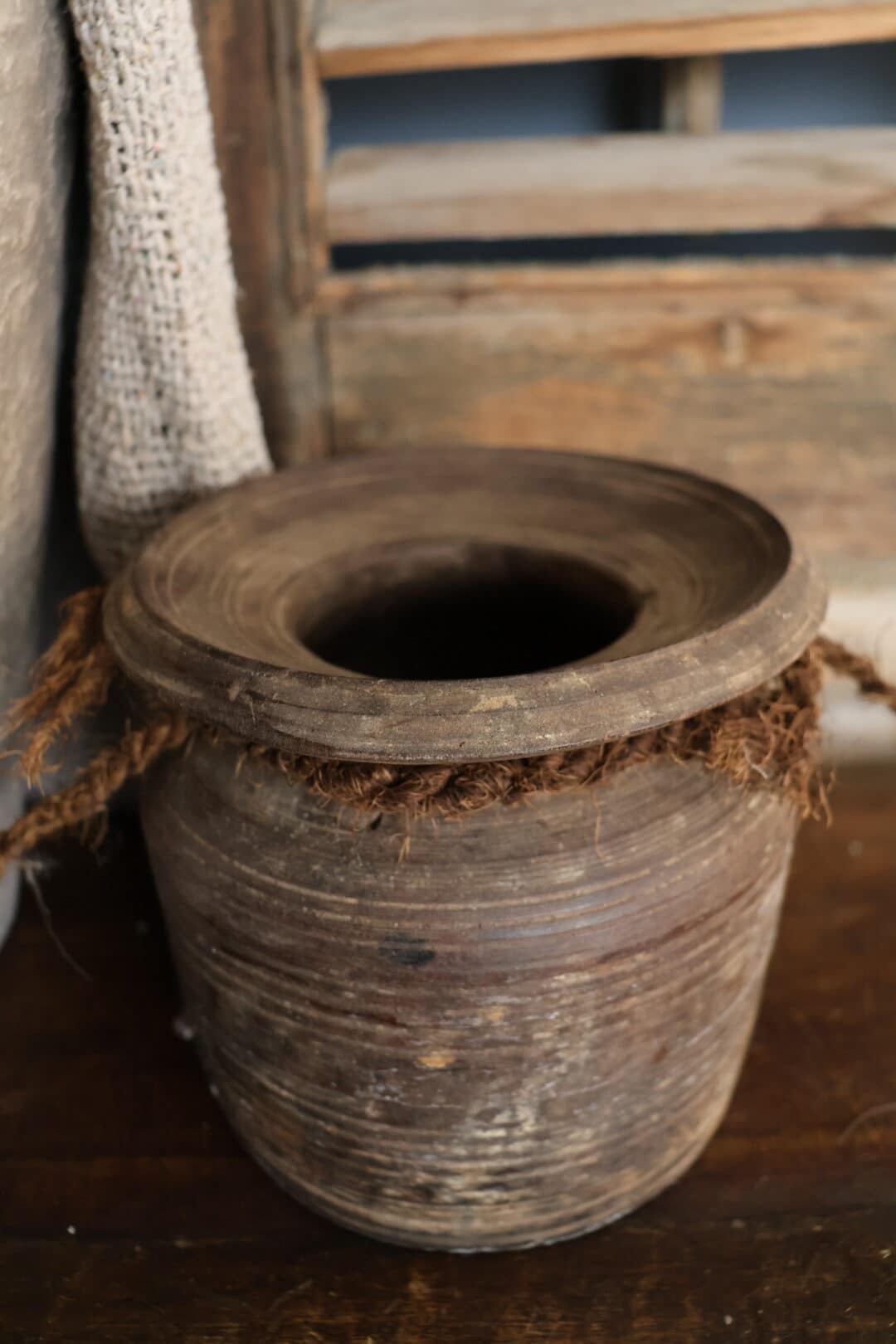 Deze handgemaakte Nepalese vaas heeft een stoere en landelijke uitstraling. Door het ambachtelijk maakproces is elk vaas uniek en kunnen kleine verschillen in kleur en structuur voorkomen. de robuuste vorm maakt de vaas ideaal voor het stijlen met onze zijde bloemen. Een karaktervol item dat warmte en sfeer toevoegt aan je interieur.