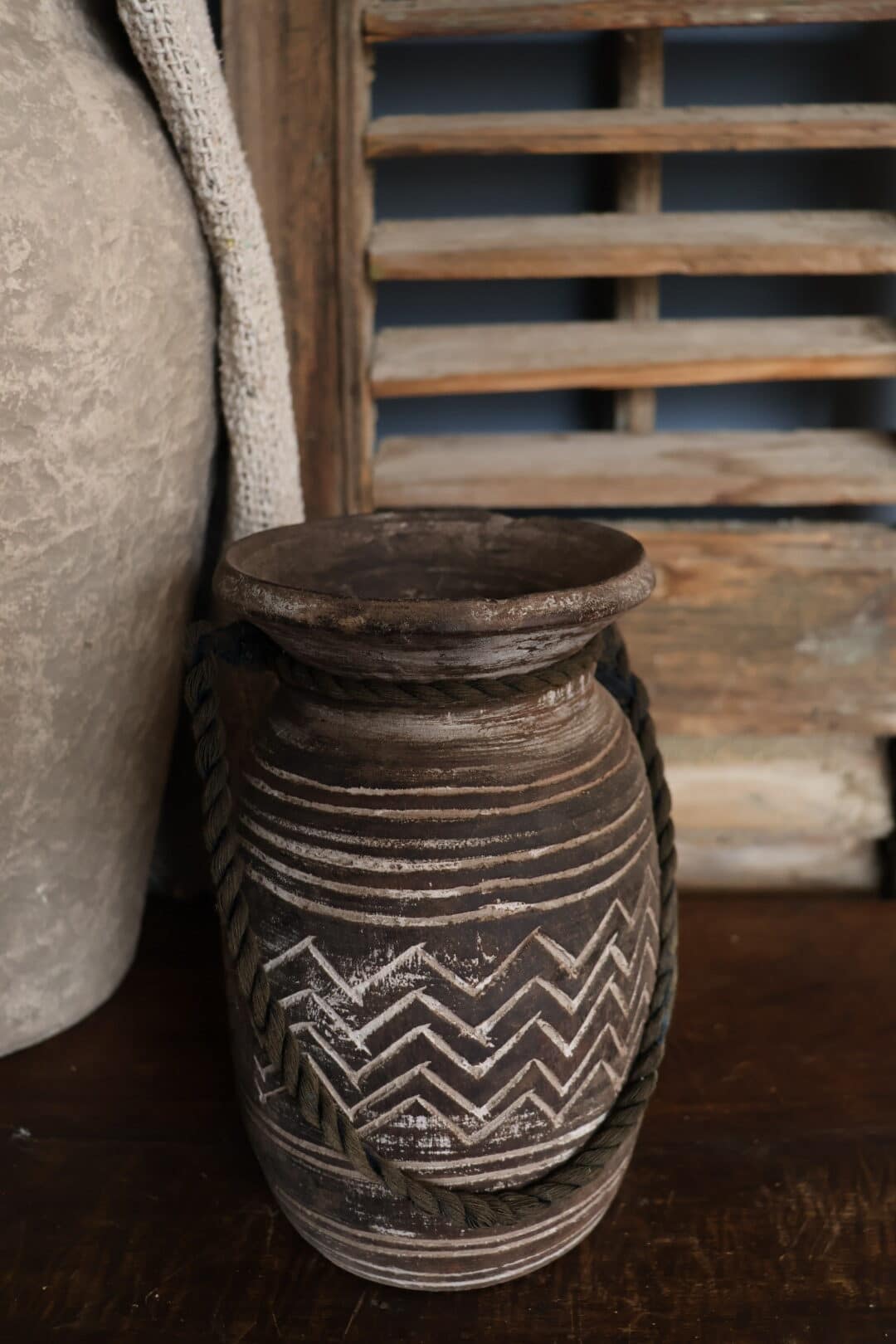 Houten Nepalese vaas met prachtig handgesneden snijwerk en een warme, natuurlijke uitstraling. Afkomstig uit India en stuk voor stuk verschillende door het handwerk en het hout. Mooi als decoratie op een kast, tafel of vensterbank, zowel met takken of zijdebloemen als puur als decoratief object. Een bijzondere toevoeging aan elk interieur.