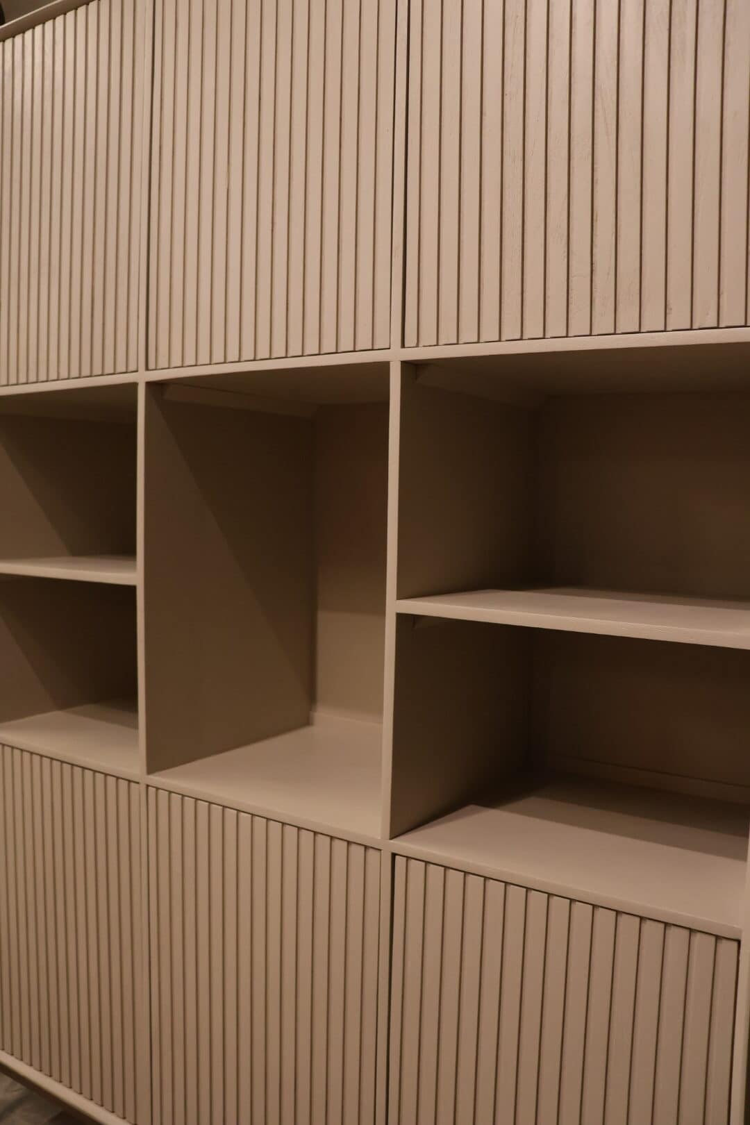 De kast biedt volop opbergruimte en is ideaal om je interieur netjes en georganiseerd te houden. Dankzij de combinatie van gesloten en open opbergmogelijkheden is de kast zowel praktisch als decoratief inzetbaar.