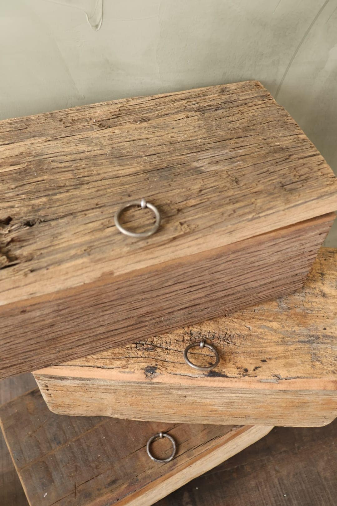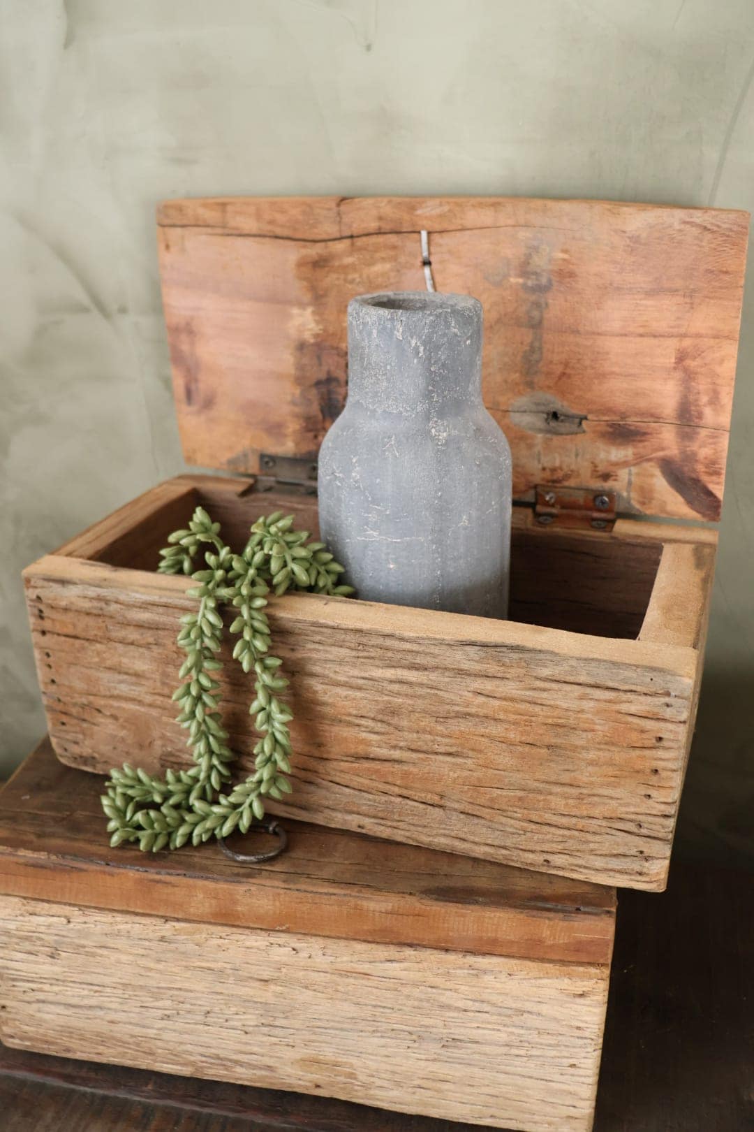 Dit kistje van oud hout is leuk om te decoreren. Hij staat prachtig op je vensterbank of dressoir.