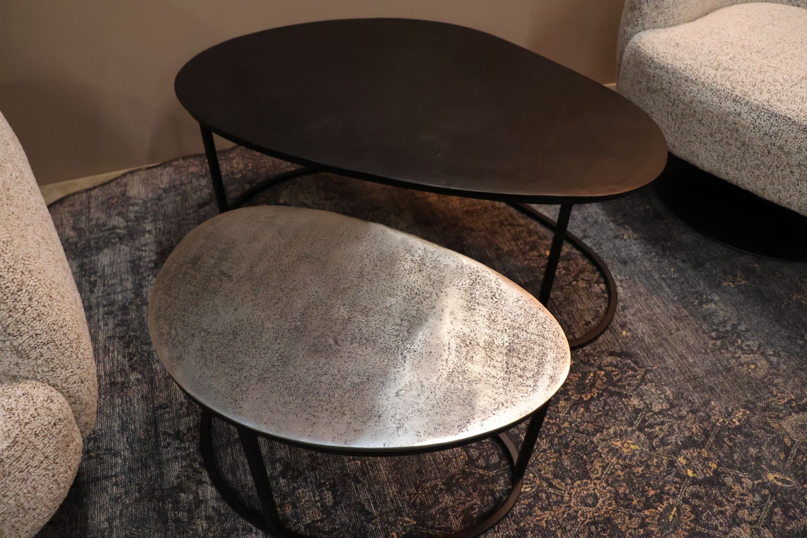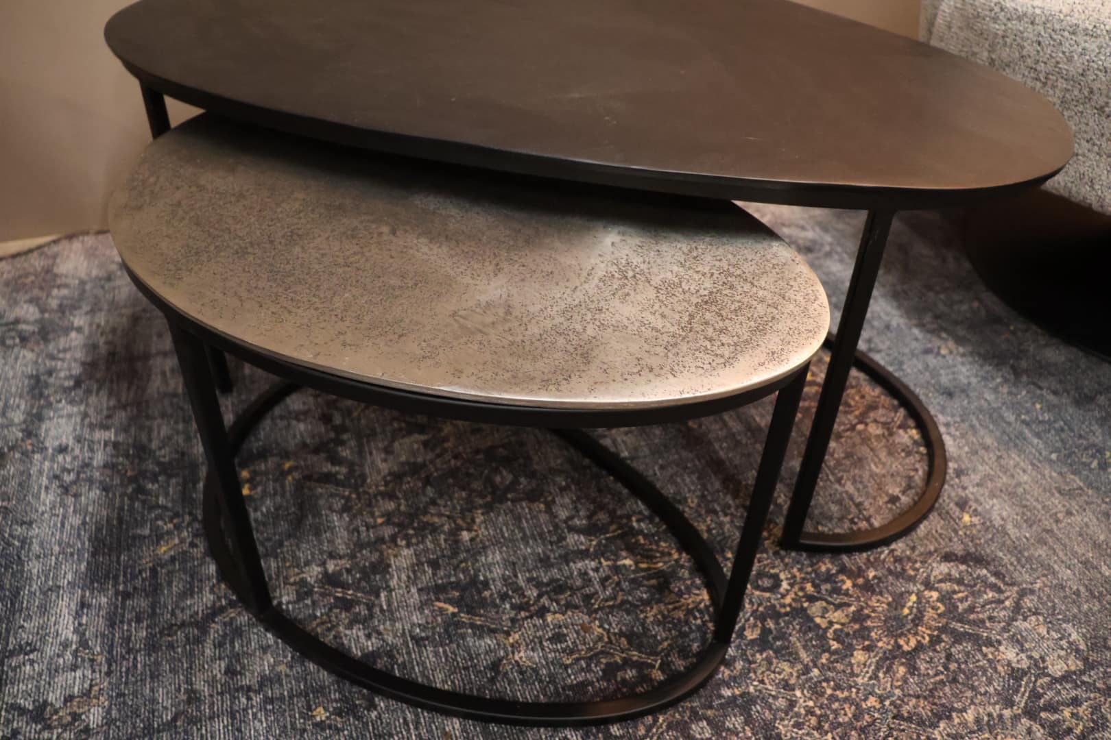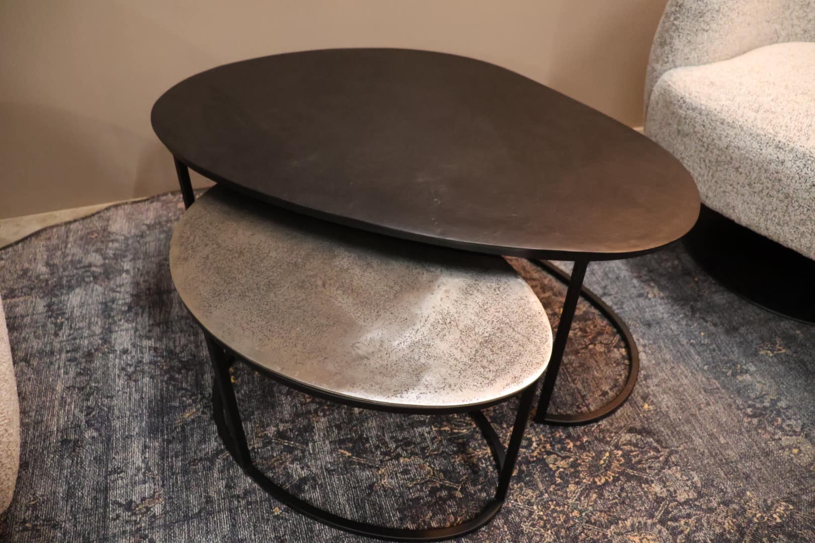 Deze moderne salontafel heeft een unieke en speels effect dankzij het slimme ontwerp: de tafeltjes zijn eenvoudig in elkaar te schuiven of los te verplaatsen. Zo creëren je telkens een andere look en pas je tafel moeiteloos aan op jou ruimte en gebruik.