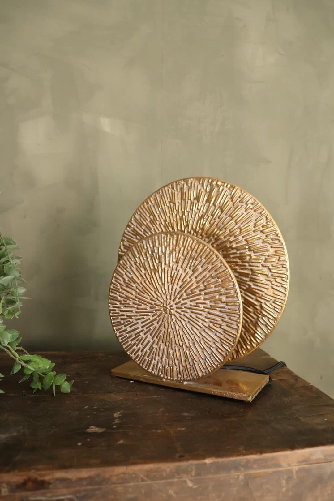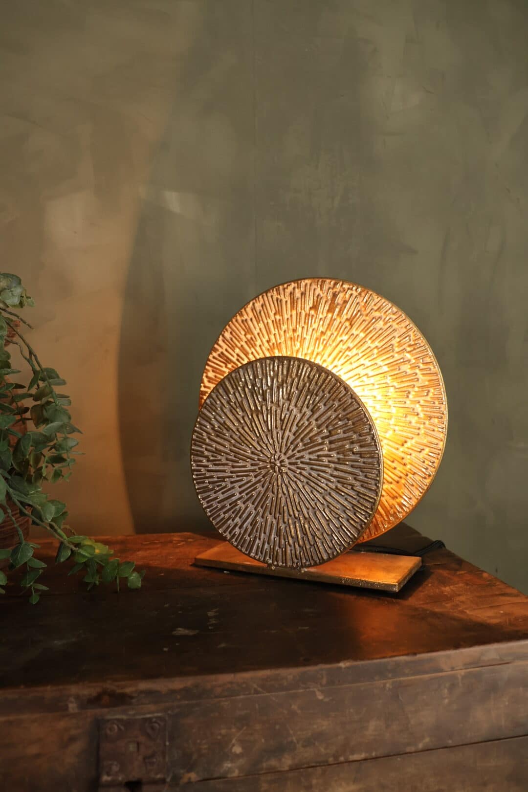 2 mooie bewerkte cirkels voor elkaar. Tussen de cirkels kan je je lichtbron plaatsen. Hierdoor geeft de lamp prachtig sfeervol licht.