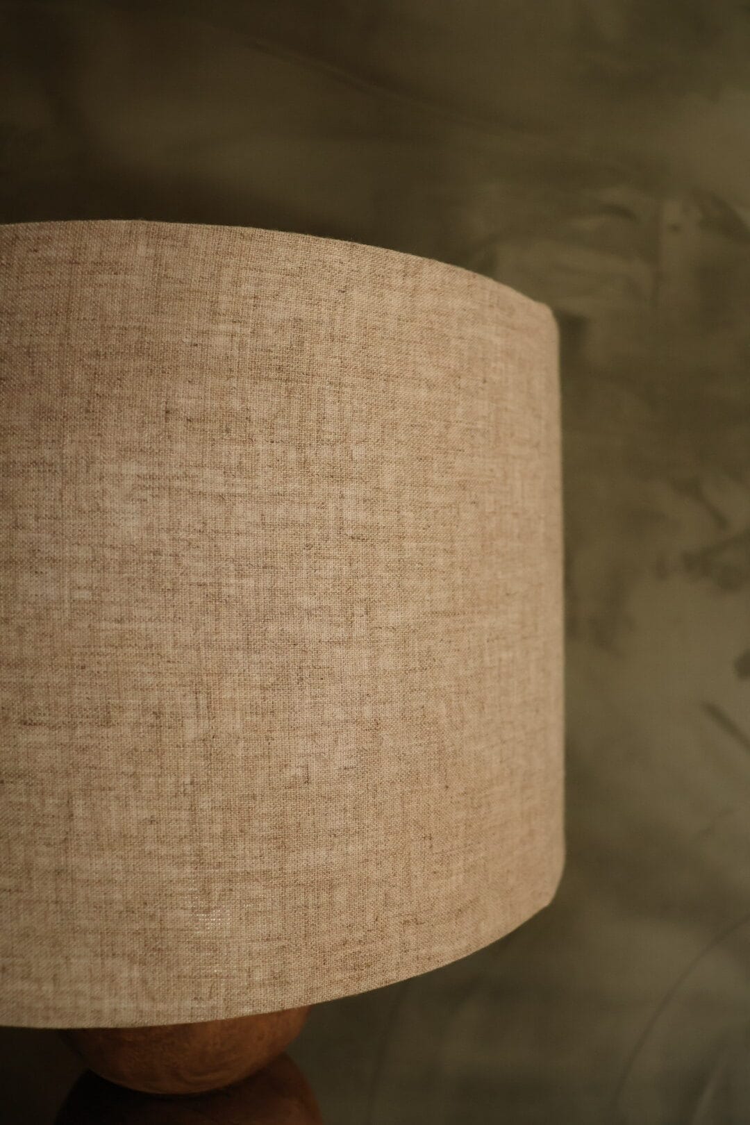 Deze tafellamp heeft een ronde houten ”balluster” voet met een mooi afgewerkte linnen kap.