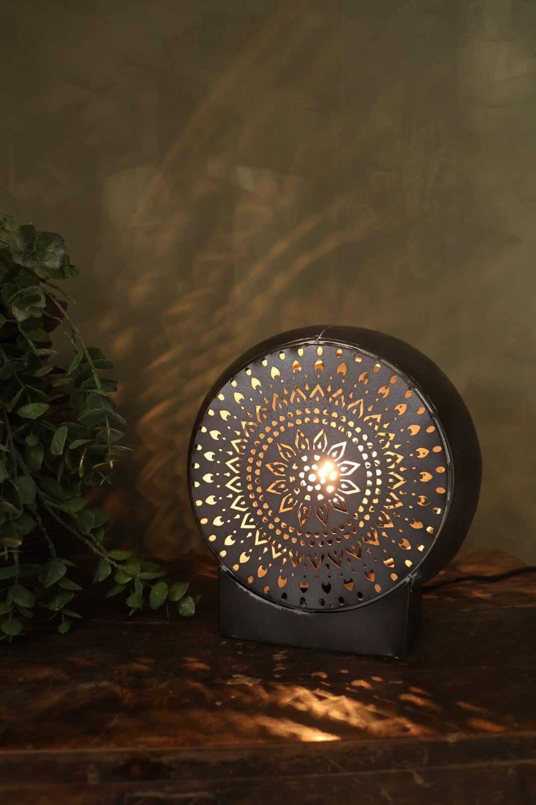 Deze lamp schijnt warm door, als je er een lampje in laat schijnen geeft dat een gezellige oosterse sfeer.