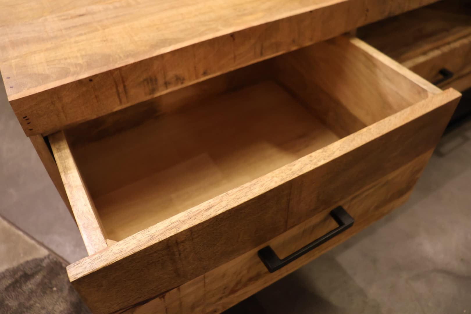 Dit tv-meubel van massief mangohout brengt warmte en karakter in je woonkamer. Dankzij de natuurlijke houttinten en strakke lijnen past het prachtig tegen een lange muur. Met zijn royale lengte en handige opbergruimte is het niet alleen sfeervolle blikvanger, maar ook een praktische keuze voor al je multimedia en accessoires.