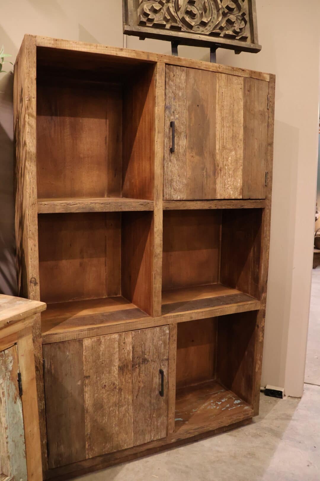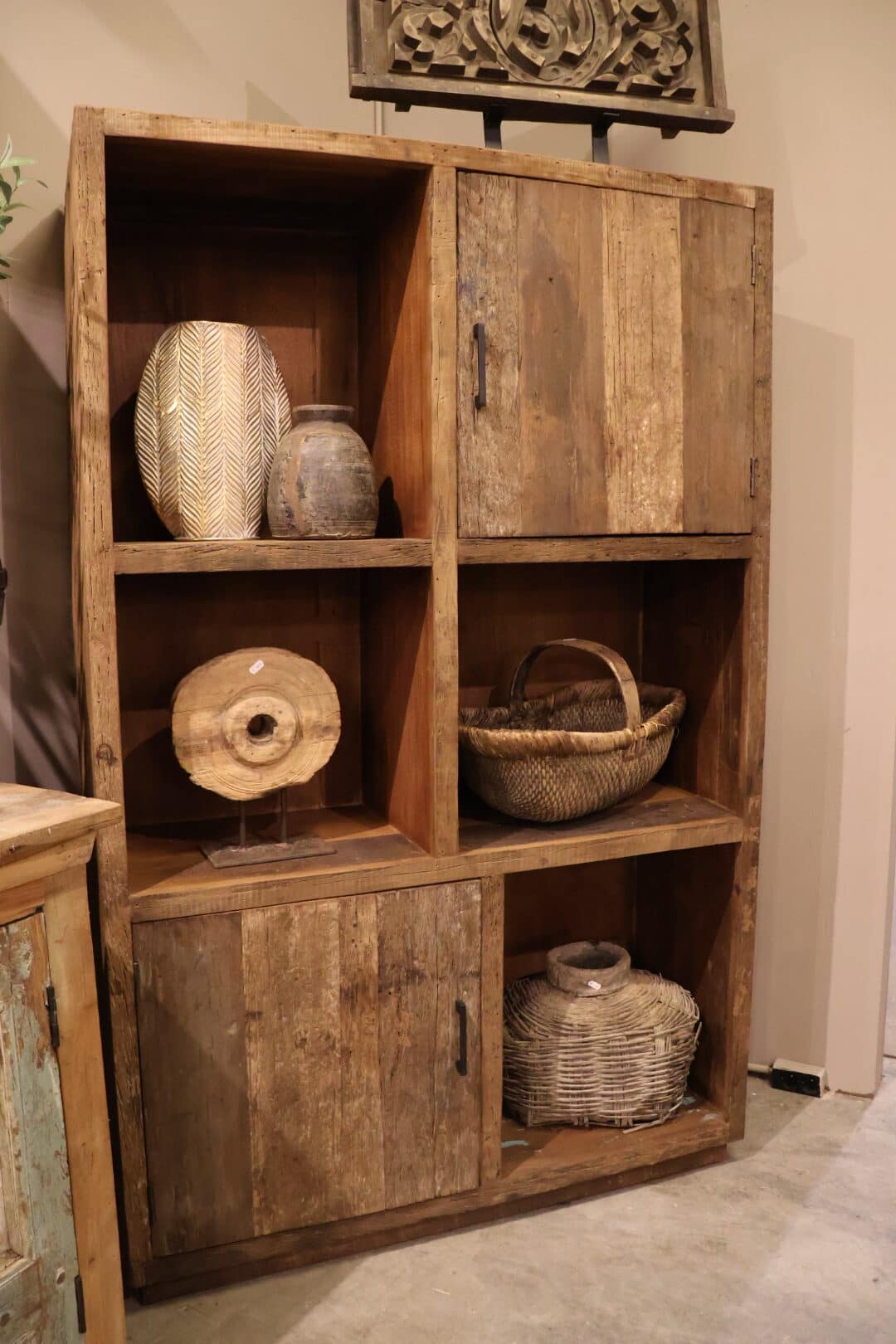 Deze sleepwood vakkenkast/opbergkast is een prachtig meubelstuk dat functionaliteit en stijl combineert. De kast is gemaakt van robuust sleepwood en heeft een warme , landelijke uitstraling die perfect past in diverse interieurs.