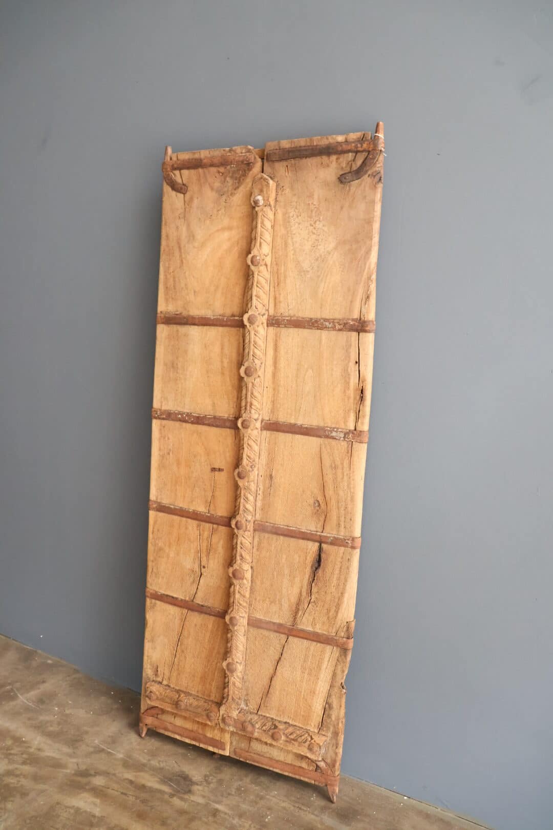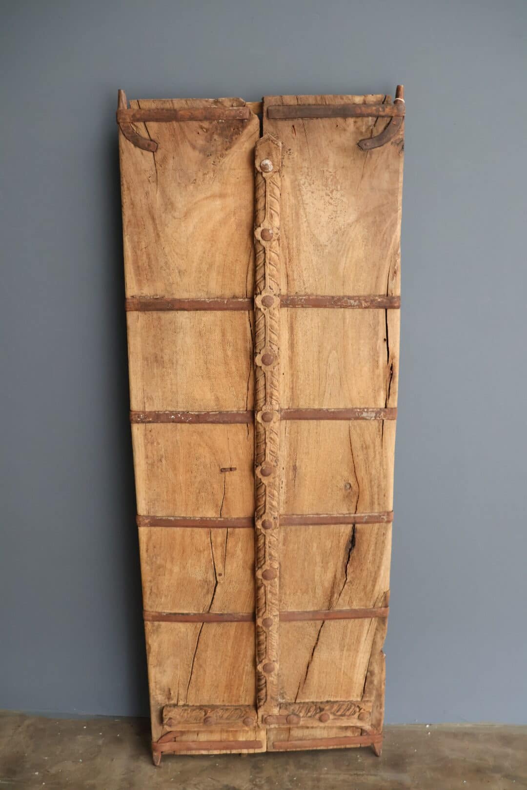 Voeg karakter en warmte toe aan je interieur met deze robuuste vintage deuren uit India. Het massieve hout geeft een krachtige uitstraling, terwijl de donkere kleur een elegante en tijdloze sfeer creëert.