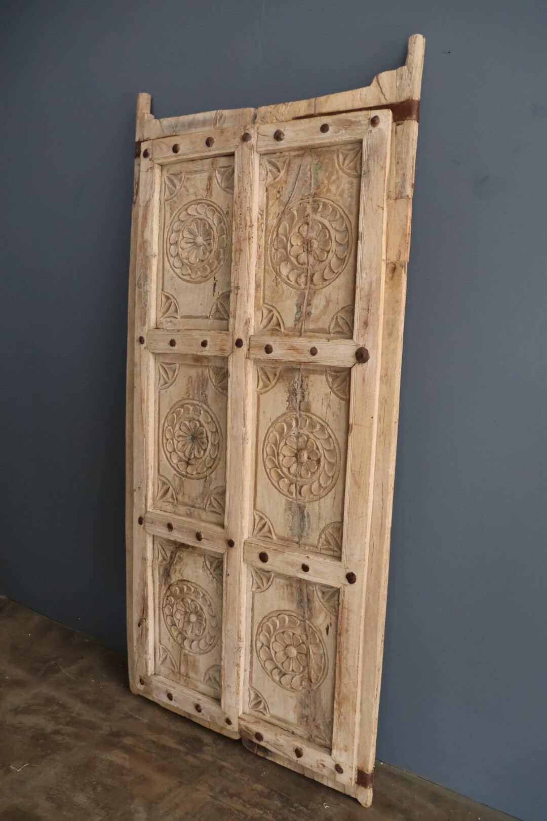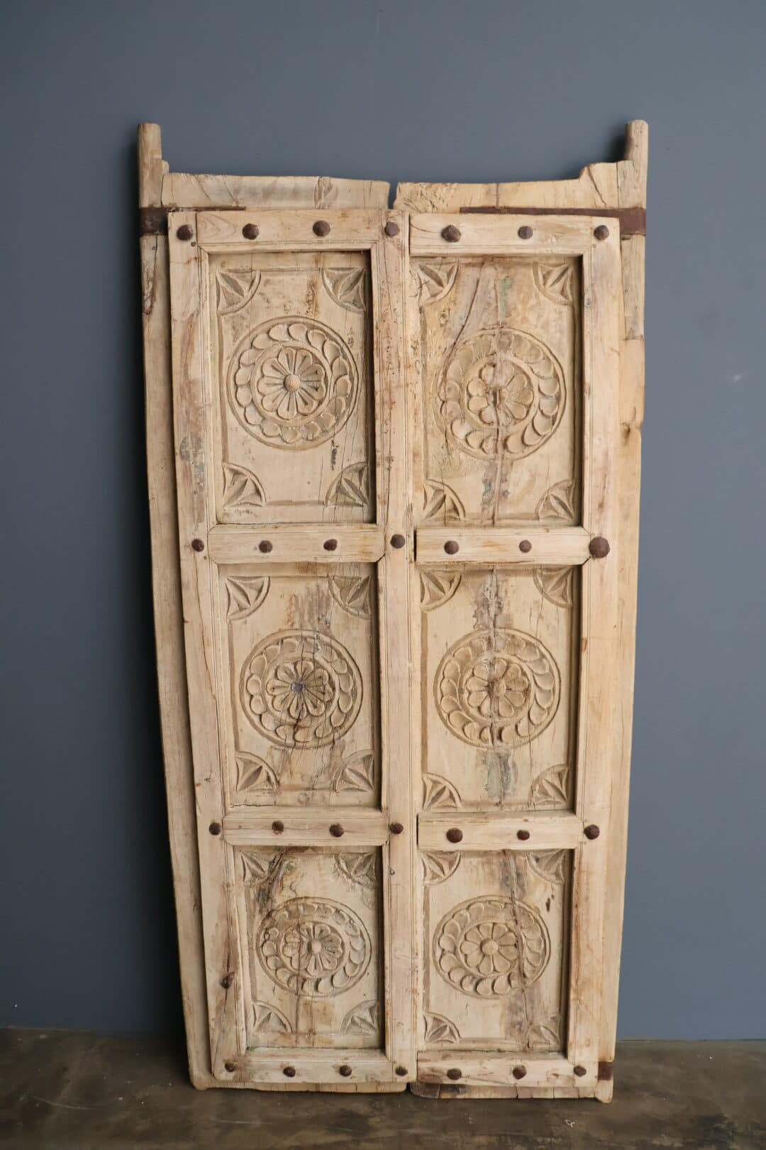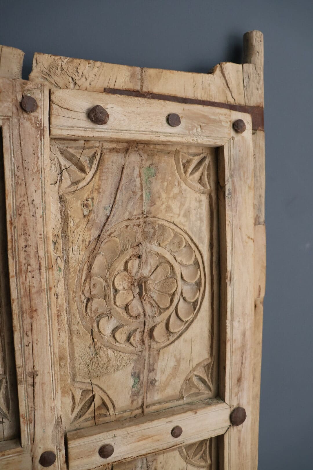 Breng authentieke charme in huis met deze vintage deuren uit India. Het handgemaakt snijwerk geeft elk exemplaar een unieke uitstraling vol karakter en verhaal. Het massieve hout straalt kracht uit, terwijl de verfijnde details zorgen voor een tijdloze elegantie.