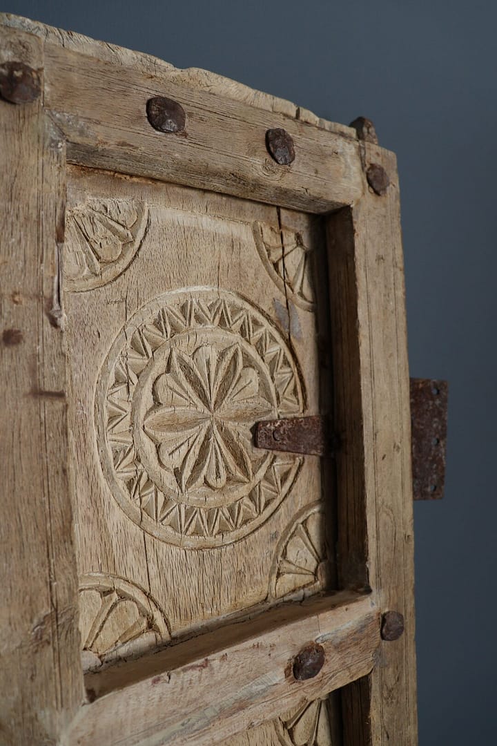 Deze vintage deuren uit India zijn een prachtig voorbeeld van authentiek vakmanschap. Het rustige beige hout straalt warmte en karakter uit, terwijl het snijwerk en de sierlijke patronen zorgen voor een unieke en elegante uitstraling. De robuuste constructie maakt de deuren niet alleen decoratief, maar ook duurzaam en functioneel.