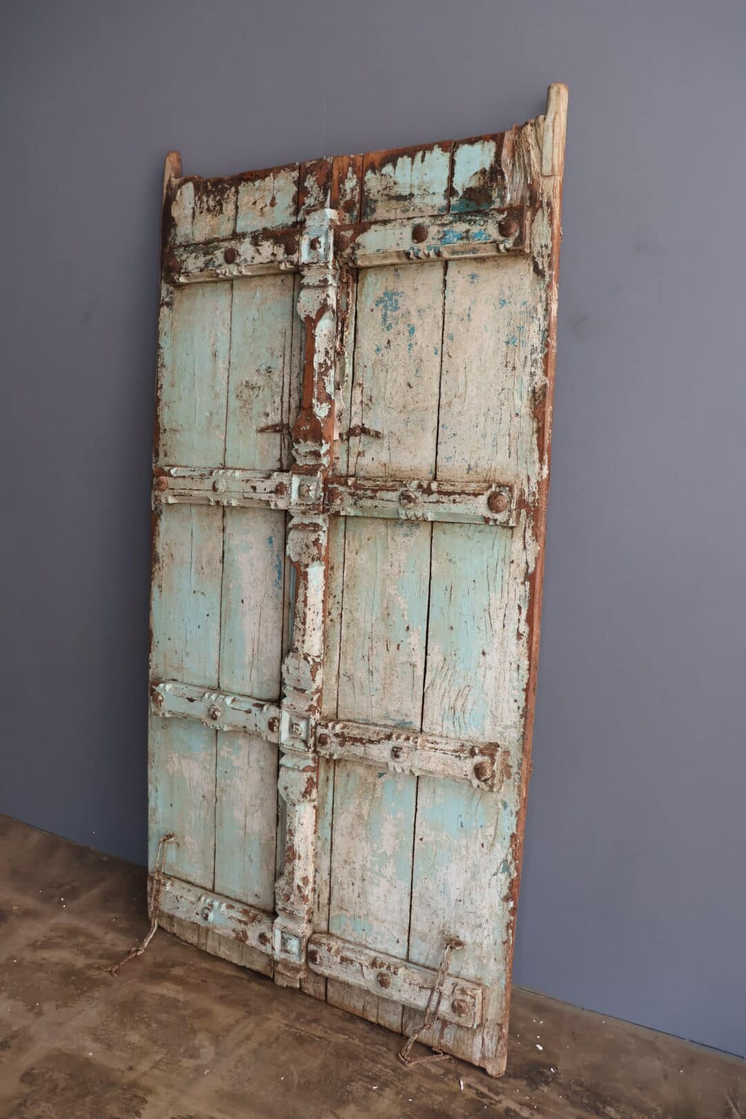 Deze vintage deuren is een mooie frisse blauwe tint brengen direct karakter en sfeer in huis. De robuuste houten constructie maakt ze stevig en duurzaam, terwijl de unieke kleur zorgt voor een opvallende en charmant accent.
