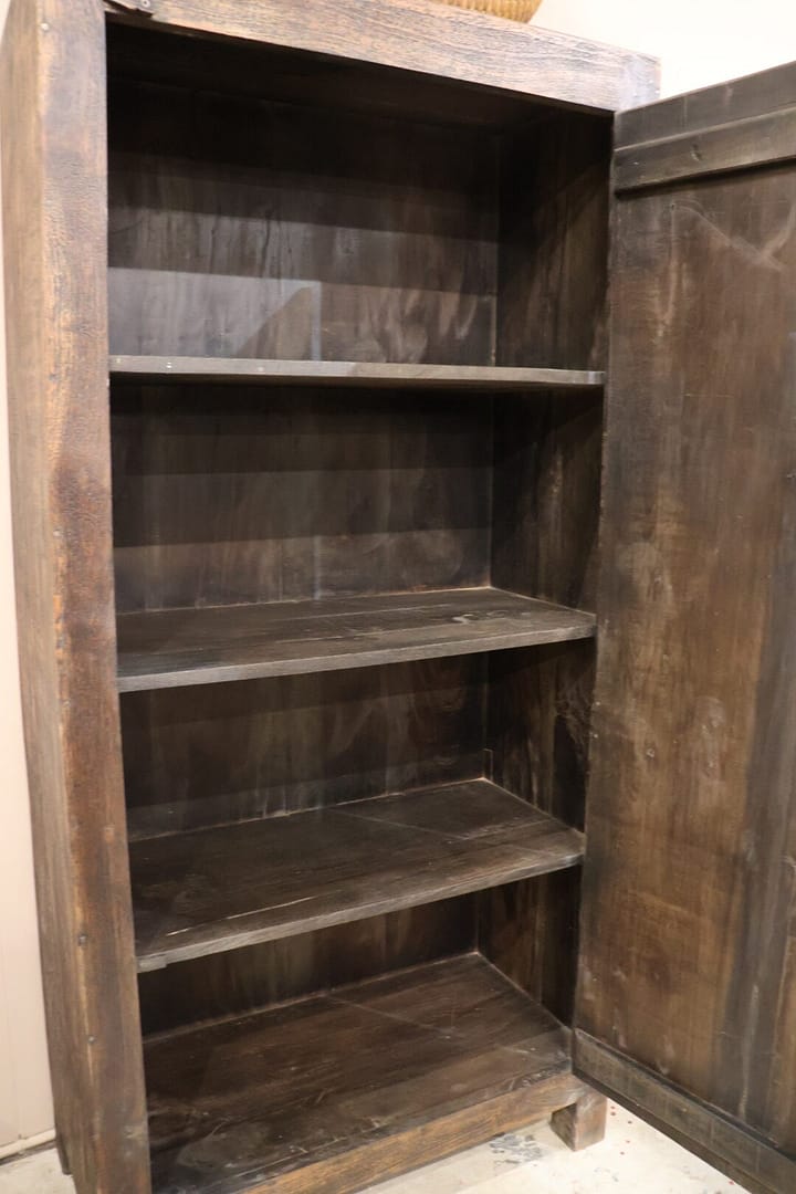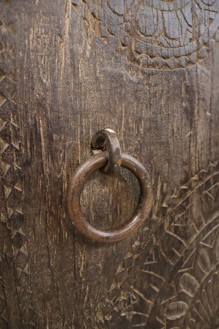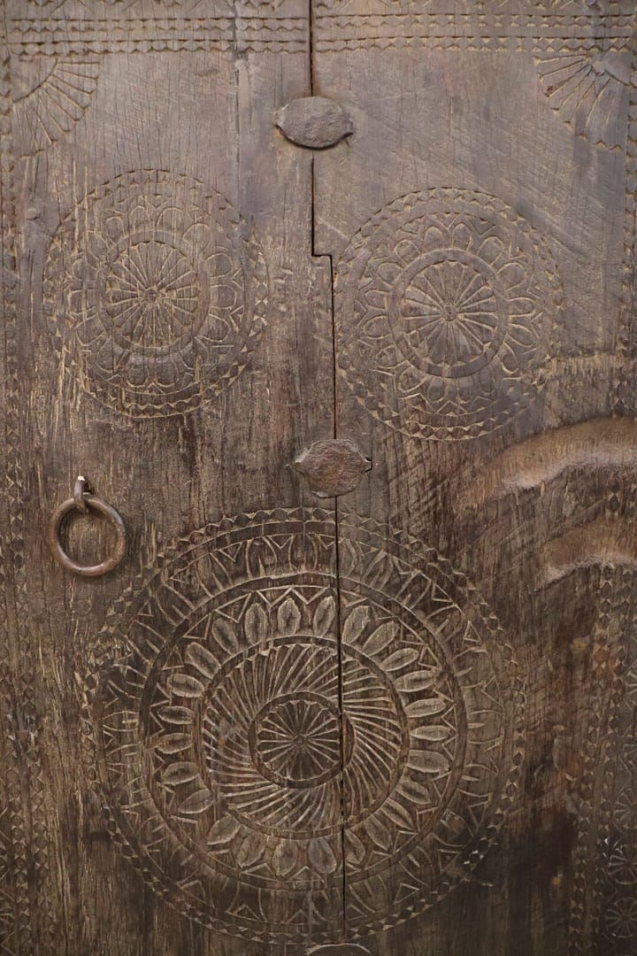 Deze vintage kast uit India is een echte blikvanger. De warme bruine kleur en het unieke houtsnijwerk geven de kast karakter en charme.