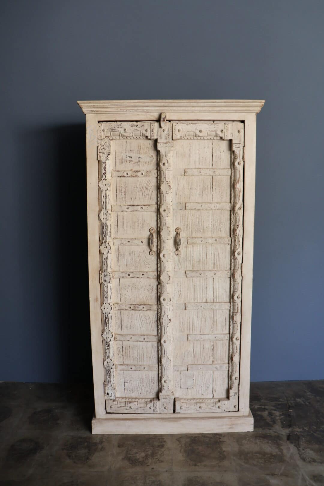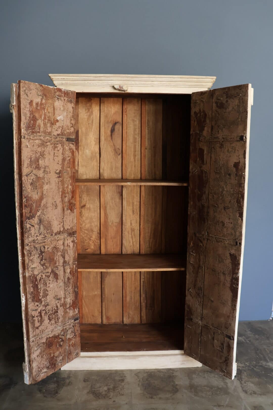 Deze beige kast combineert een unieke vintage uitstraling met het gemak van royale opbergruimte. De lichte kleur maakt het meubel eigentijds en veelzijdig – perfect om te combineren met verschillende woonstijlen, van modern tot boho of landelijk.