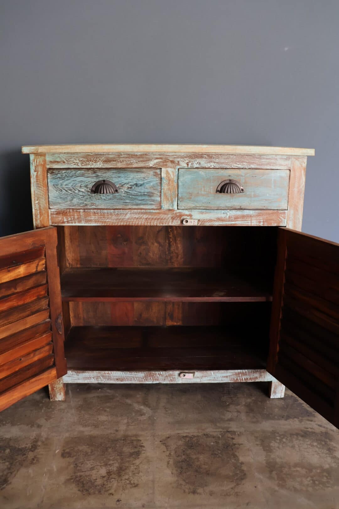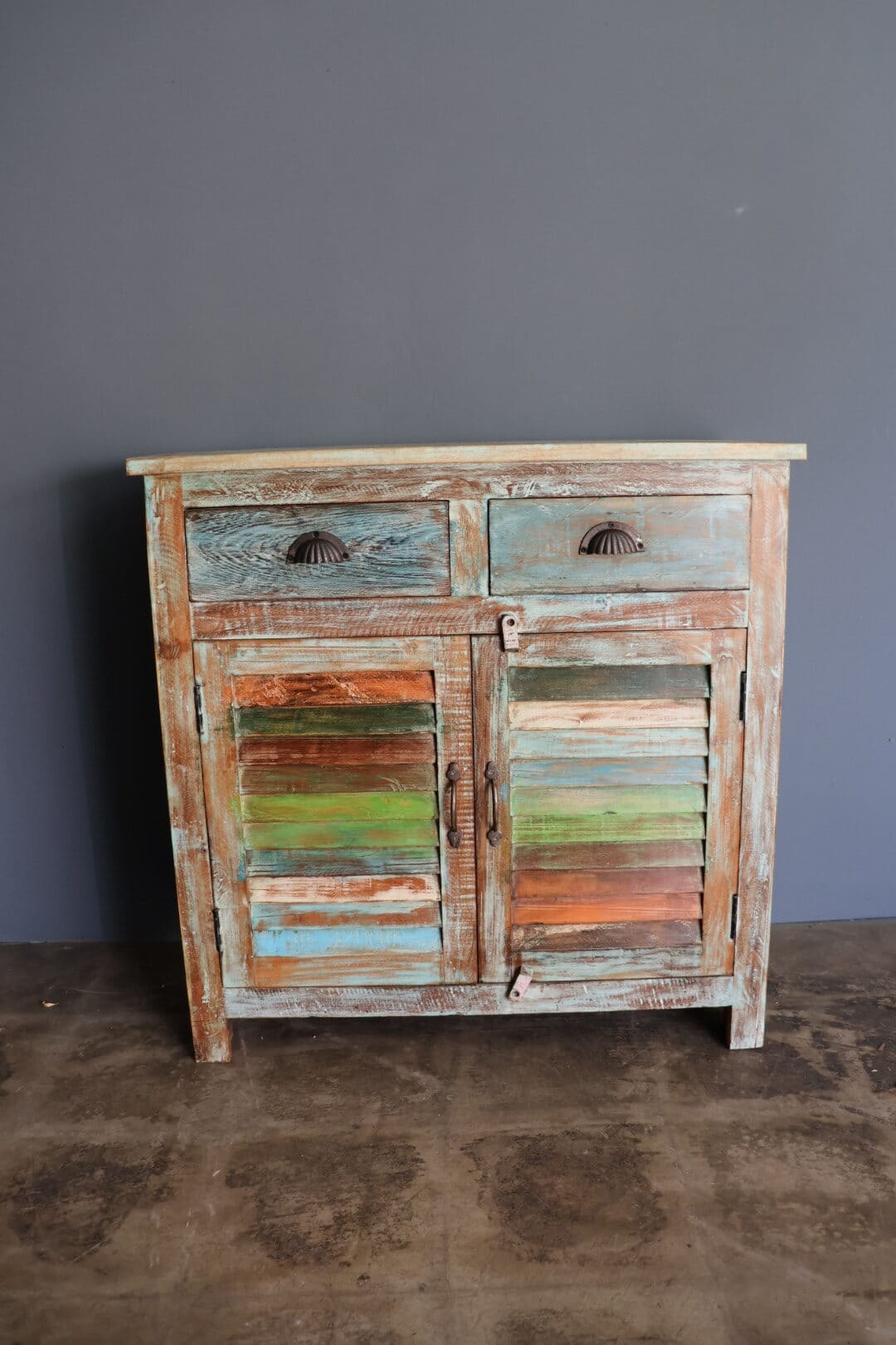 Op zoek naar een kast die opvalt en praktisch is? Deze kleurrijke kast met louvredeuren combineert een uniek design met handige opbergruimte. De speelse kleuren en de karaktervolle deuren maken het een echte blikvanger in iedere kamer, terwijl je er je spullen stijlvol in kunt opbergen.