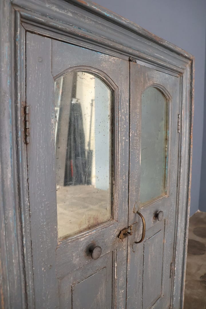 Dit schattige kastje is een unieke vintage meubelstuk met een charmant karakter. De spiegeldeurtjes geven de kast een speels en stijlvol accent, terwijl het handige formaat toch verrassend veel opbergruimte biedt.