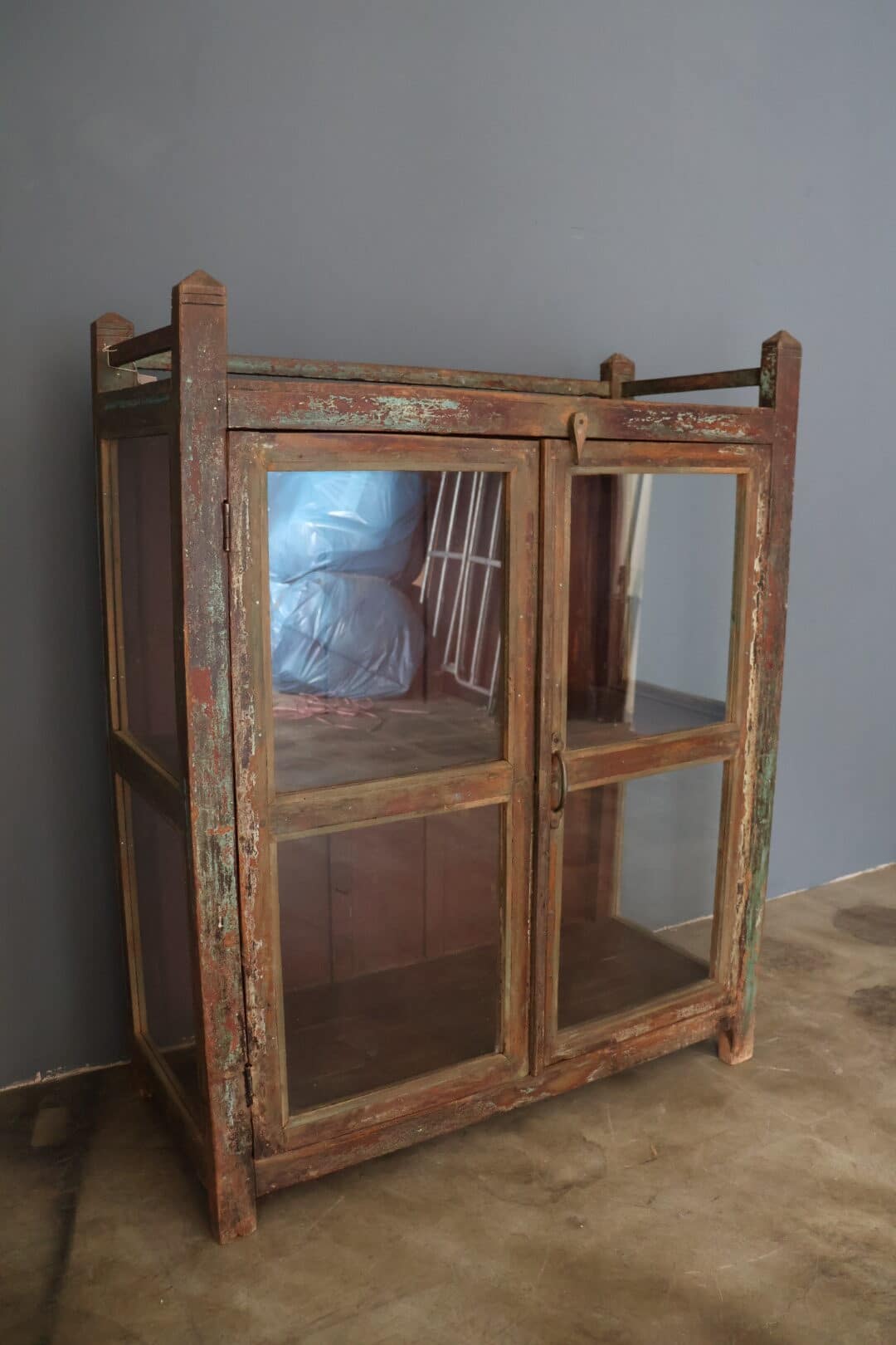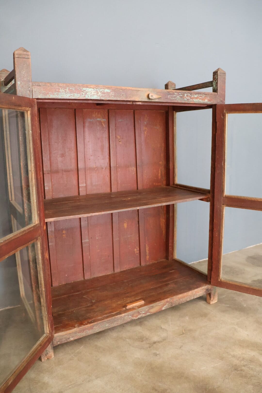De glazen deurtjes maken het perfect om je mooiste items stijlvol tentoon te stellen, terwijl het leuke detail aan de bovenkast dit meubel een speels en bijzonder karakter geeft. Compact van formaat, maar groots in uitstraling – ideaal voor de woonkamer, hal of slaapkamer.