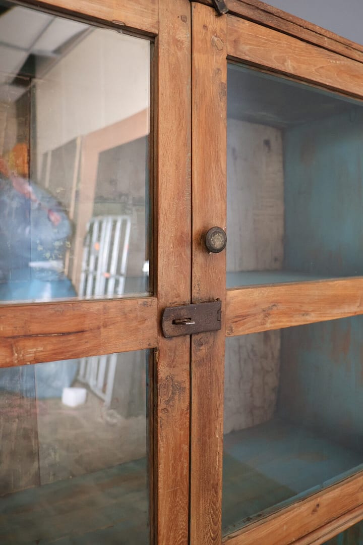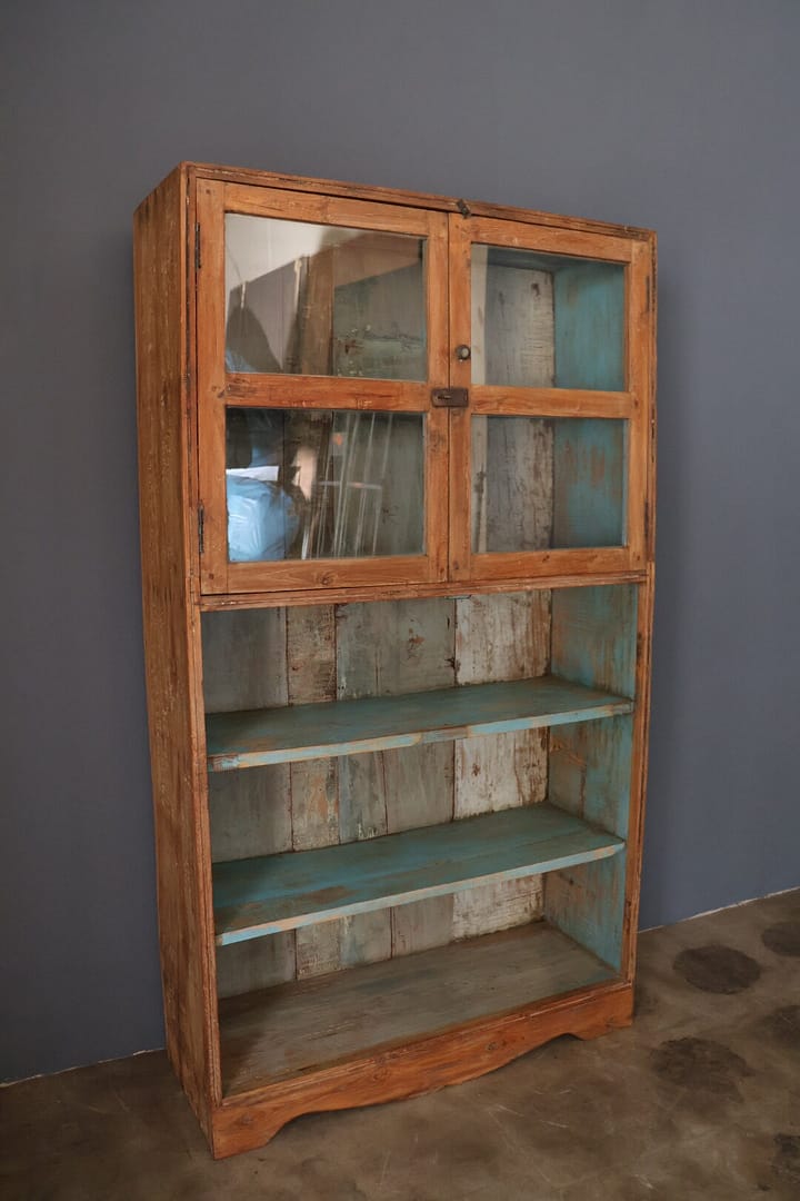 Deze unieke vintage kast uit India is een echte pronkstuk voor je interieur. Het hout heeft een warme bruine kleur, prachtig gecombineerd met subtiele blauwe accenten die de kast een speels en doorleefd karakter geven.