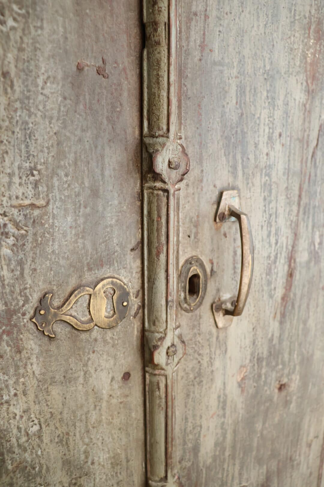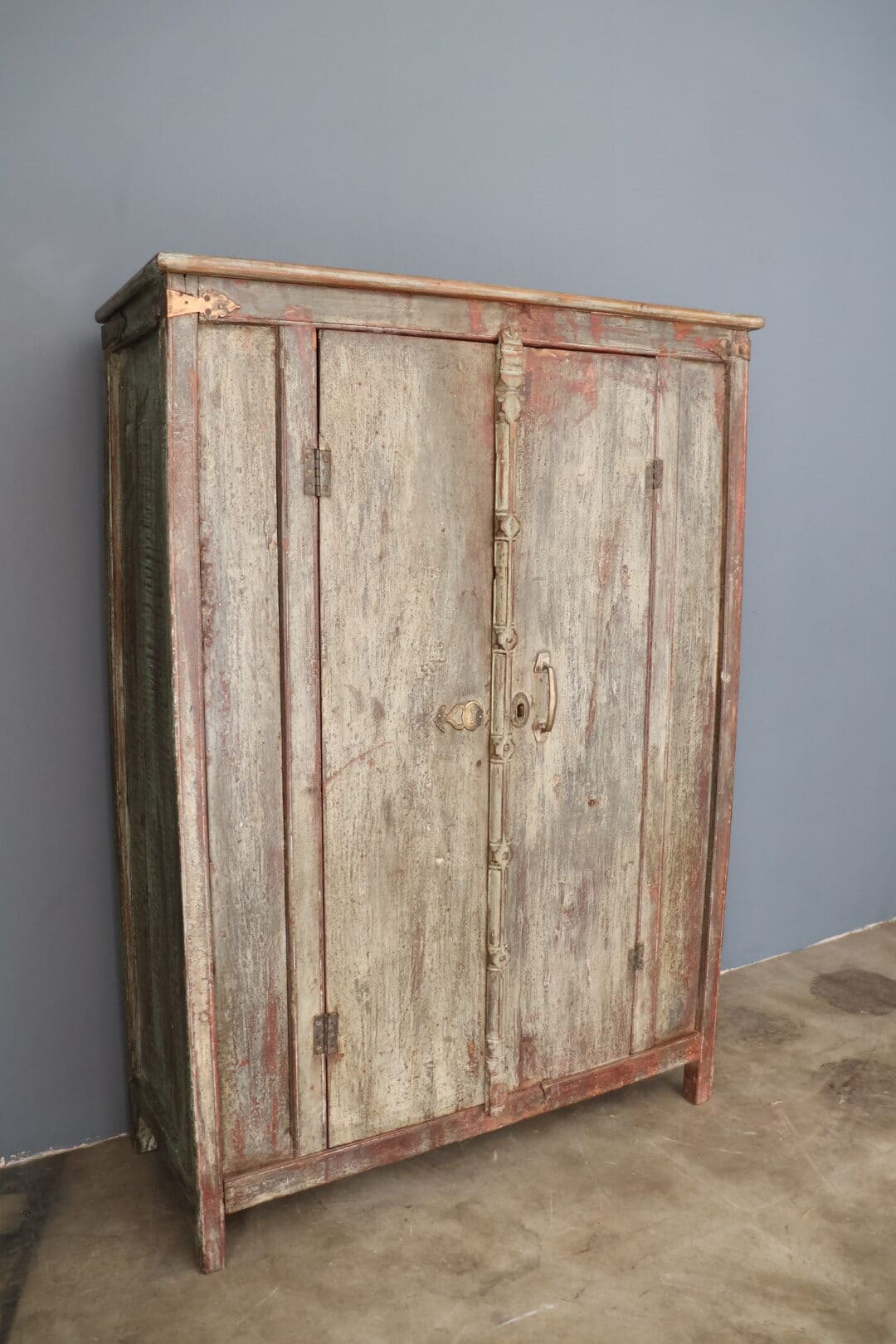 Deze vintage kast uit India onderscheidt zich door de bijzondere vormgeving van de deuren. De unieke openingen geven het meubel een luchtig en speels karakter, terwijl de lichte houtkleur zorgt voor een frisse en warme uitstraling.