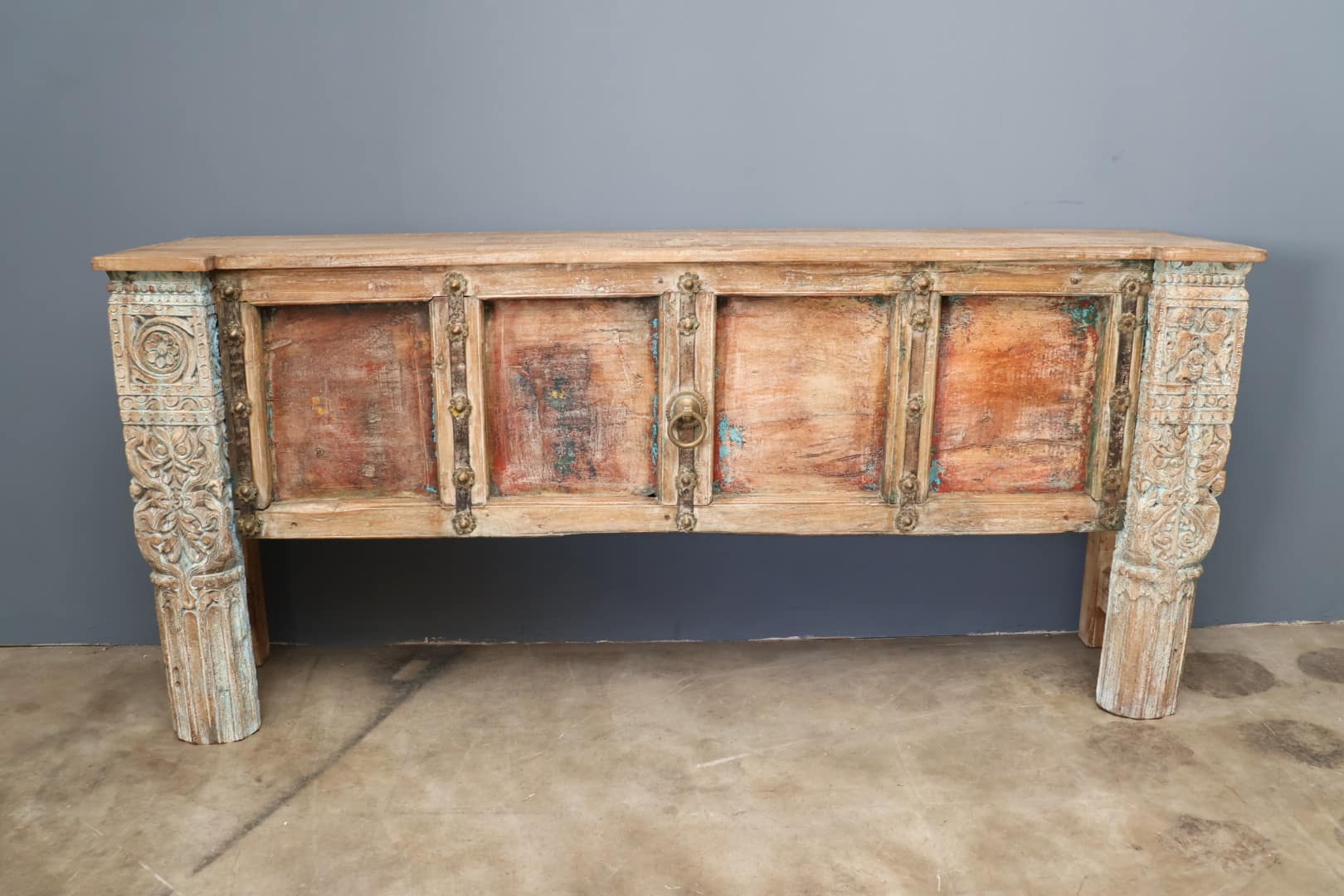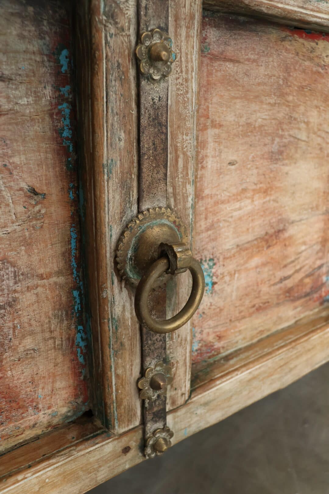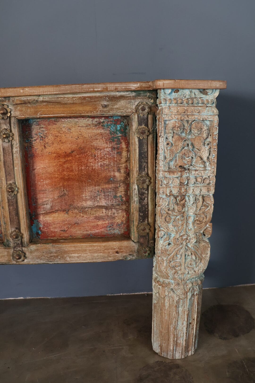 Breng een wereldse sfeer in huis met deze bijzondere side table. Het side table heeft een levendige mix van kleuren, gecombineerd met subtiele gouden accenten die zorgen voor een elegante glans. elk krasje en detail draagt bij aan zijn karakter en maakt dit meubelstuk uniek.