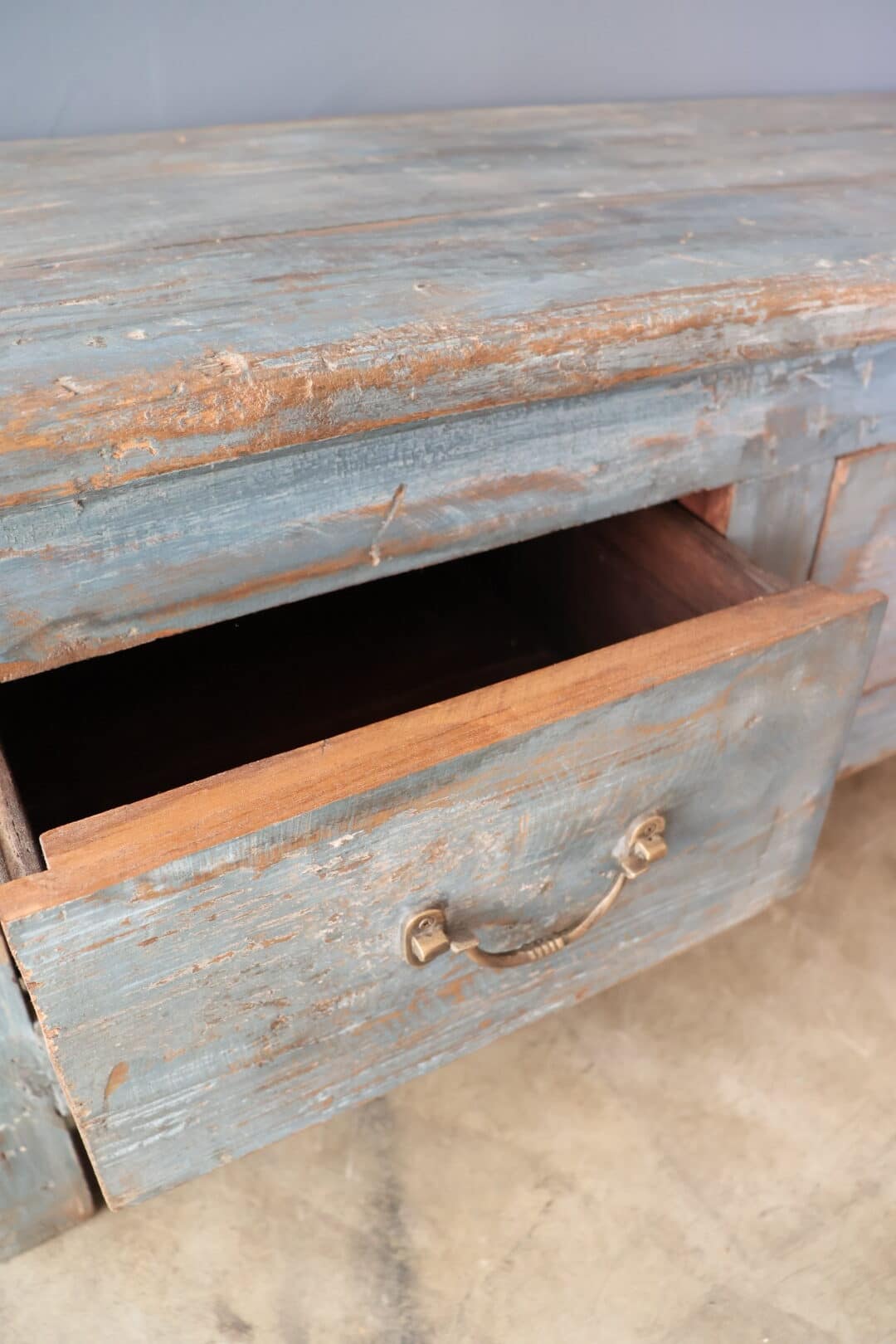 Dit prachtige tv-meubel uit India heeft een unieke uitstraling dankzij de oudblauwe afwerking en het authentieke karakter van het hout. De warme, doorleefde kleur geeft direct sfeer aan je interieur en maakt dit meubel tot een echte blikvanger.