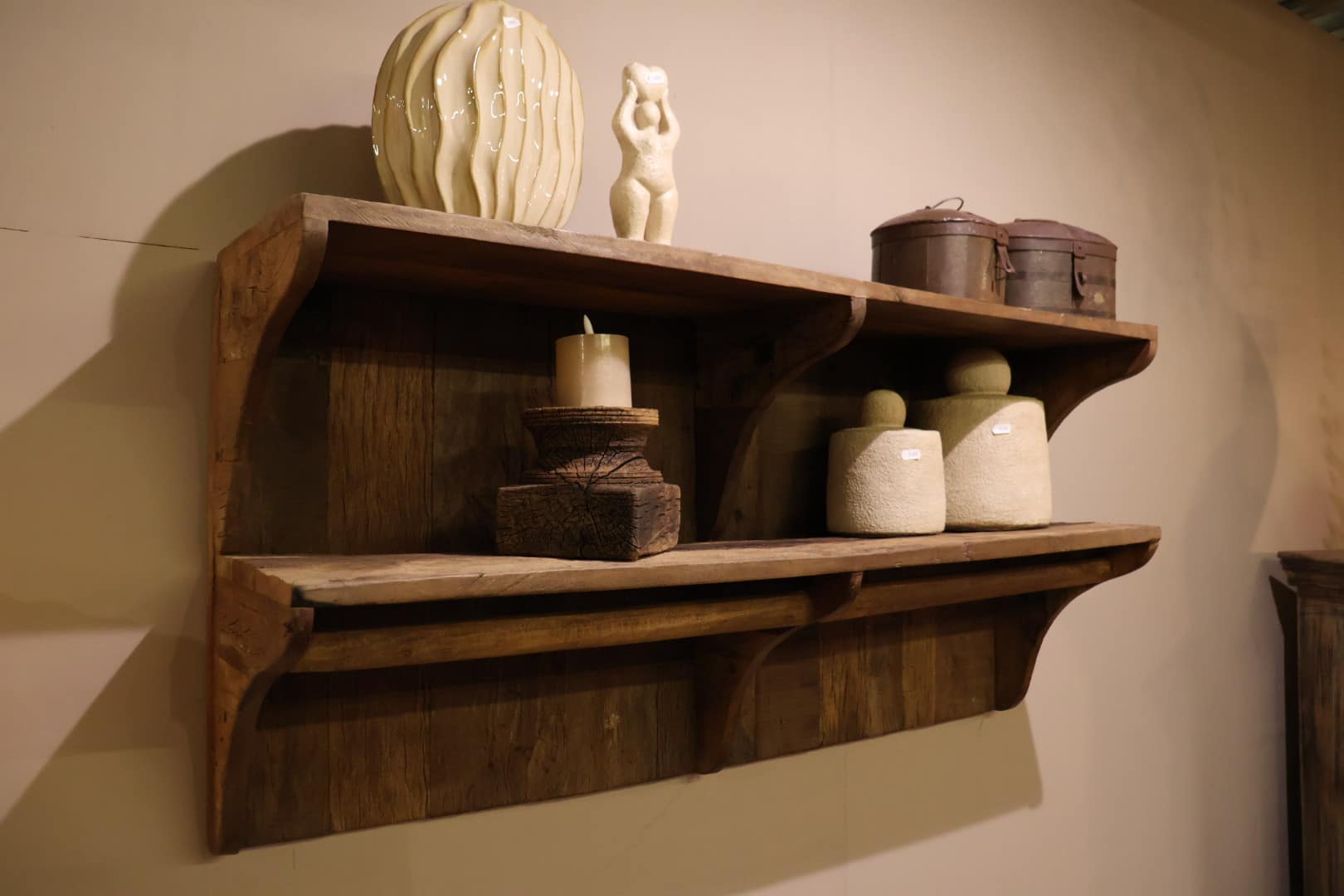Het wandrek van sleepwood is perfect om je mooiste spulletjes tentoon te stellen. Hang het in de keuken voor kruidenpotten en servies, of boven de bank om decoratie, planten of fotolijsten een plek te geven.