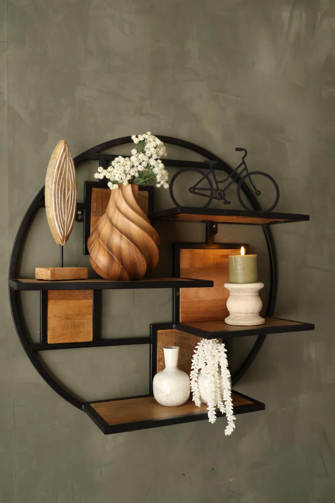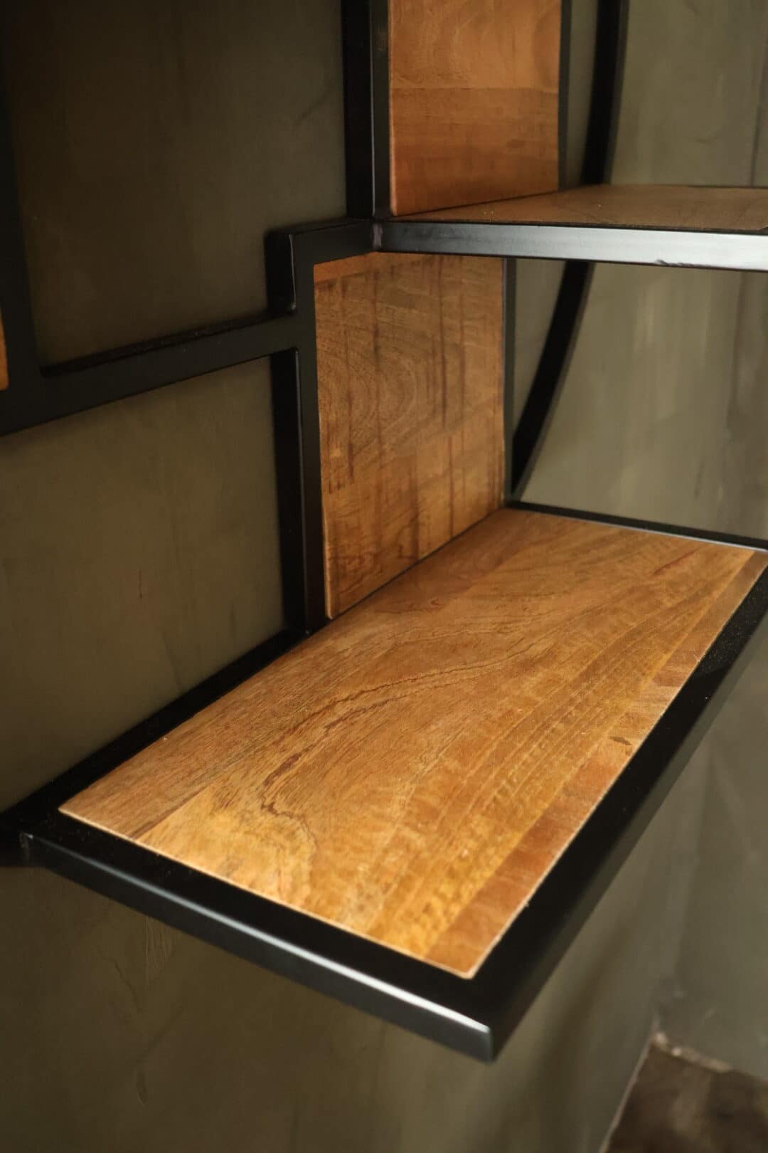 Hij is gemaakt van mangohout en metaal. Je kan het wandrek helemaal naar eigen smaak inrichten.